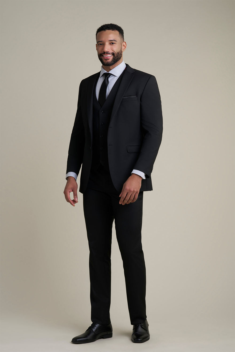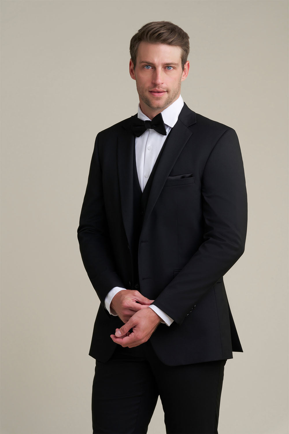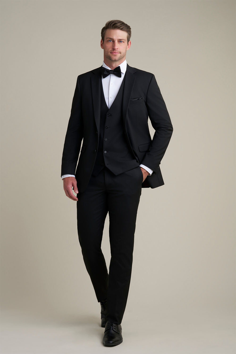 COMPANION VEST: Looking for a vest in the same fabric as the jacket & pants? Consider adding the "Windsor" Black Vest ($74.95) and you now have a 3-piece suit!