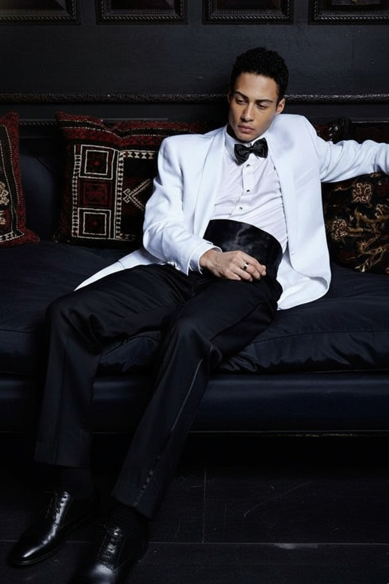 COMPANION PANTS: The pants that were designed to go with this "Brentwood" jacket is the "Washington" Black Tuxedo Pants, featuring an updated 1/8" narrow satin stripe going down the outer side of each leg.
