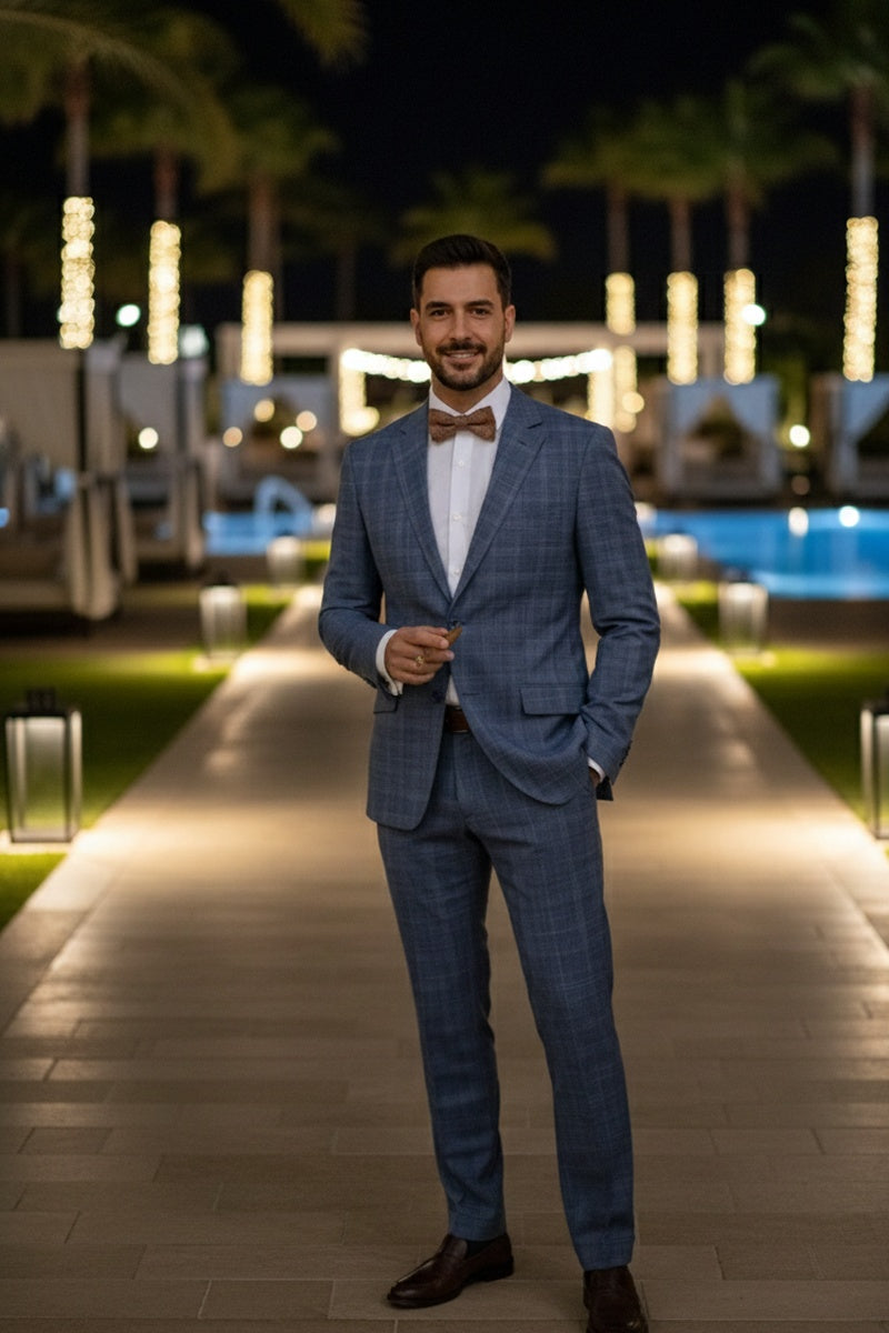 RN Collection Blue Check 2-Button Notch Suit (2-Piece Set)