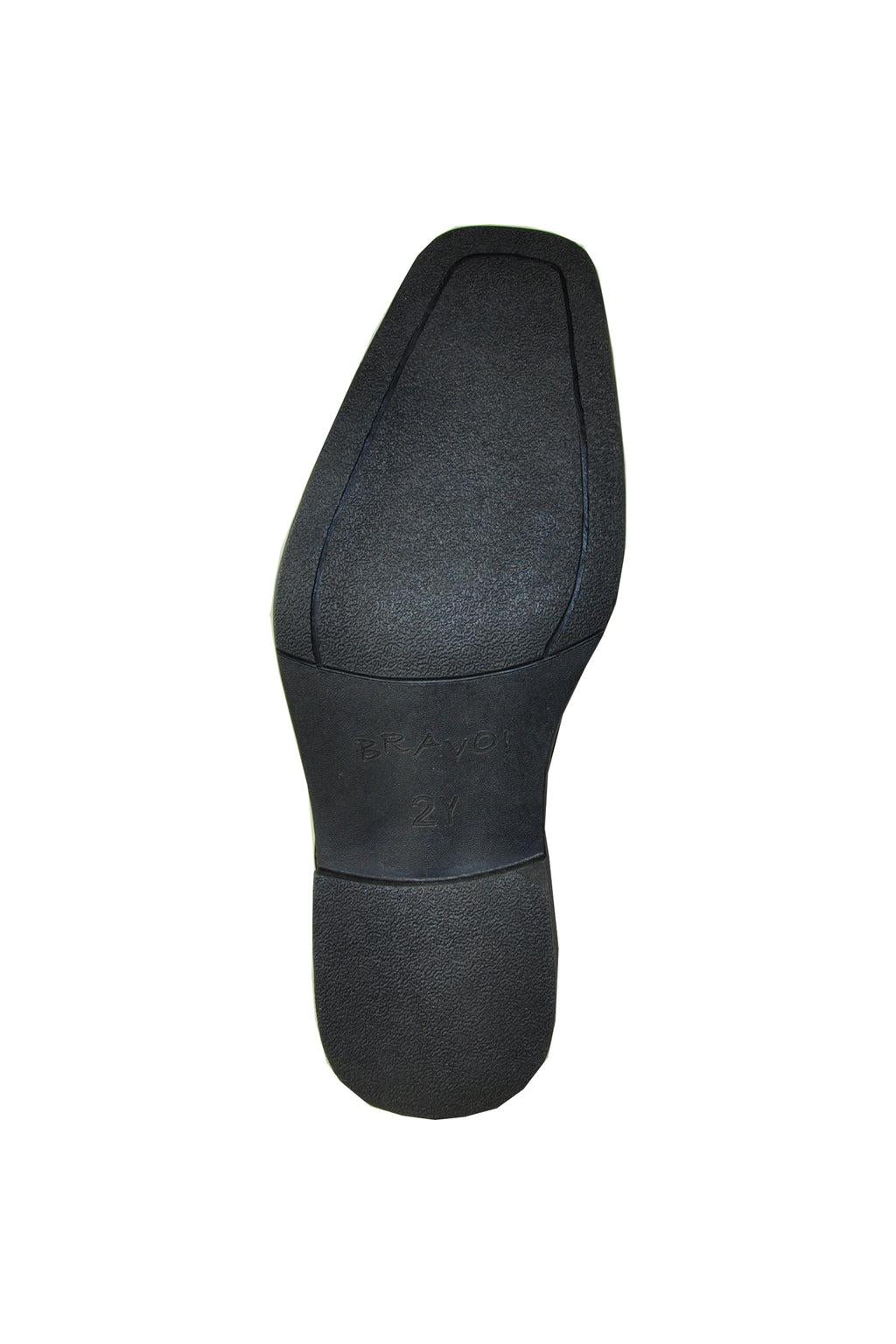 The "King" black dress shoes features an Oxford style with a pointy square toe. Odor free premium fully-lined interior and stitched outsole provide comfort and stability for your little one.