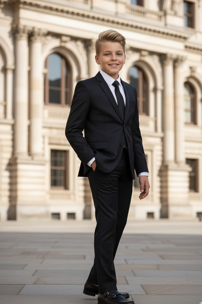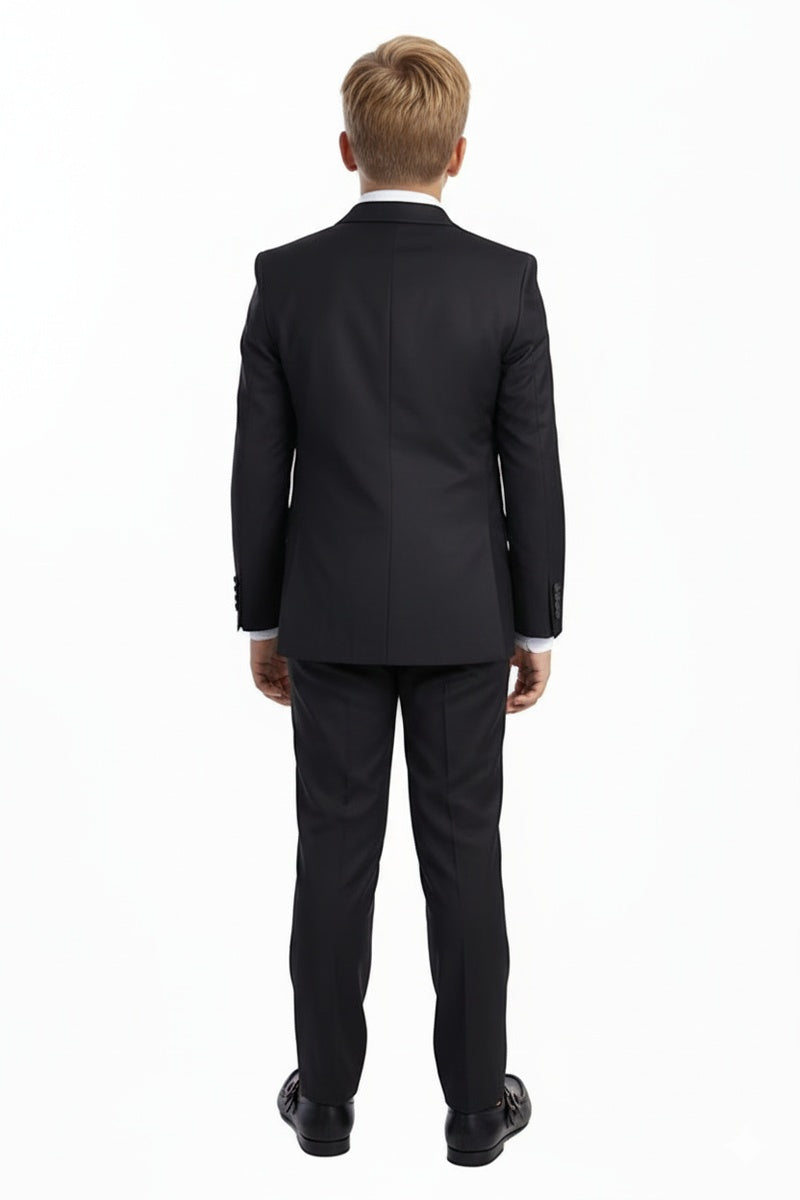 This 5-piece set includes the jacket, pants, shirt, vest and tie.