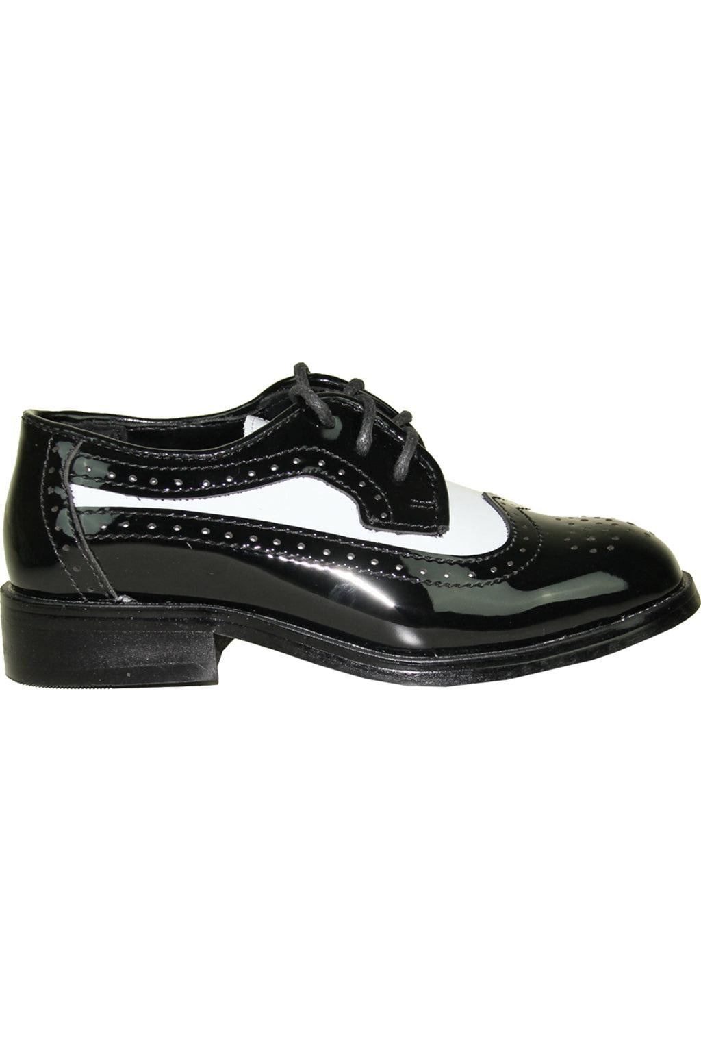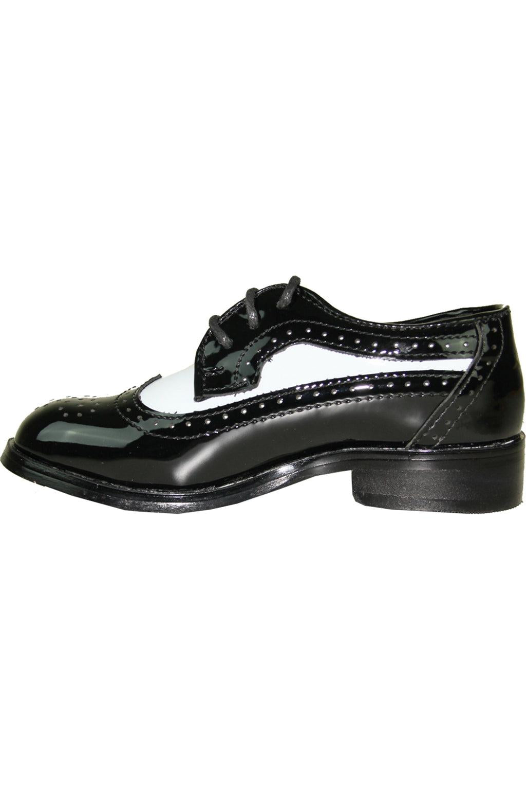 The "Chaz" black & white tuxedo shoes feature a two-tone black & white combined patent finished upper. Odor free premium fully-lined interior and stitched outsole provide comfort and stability for your little one.