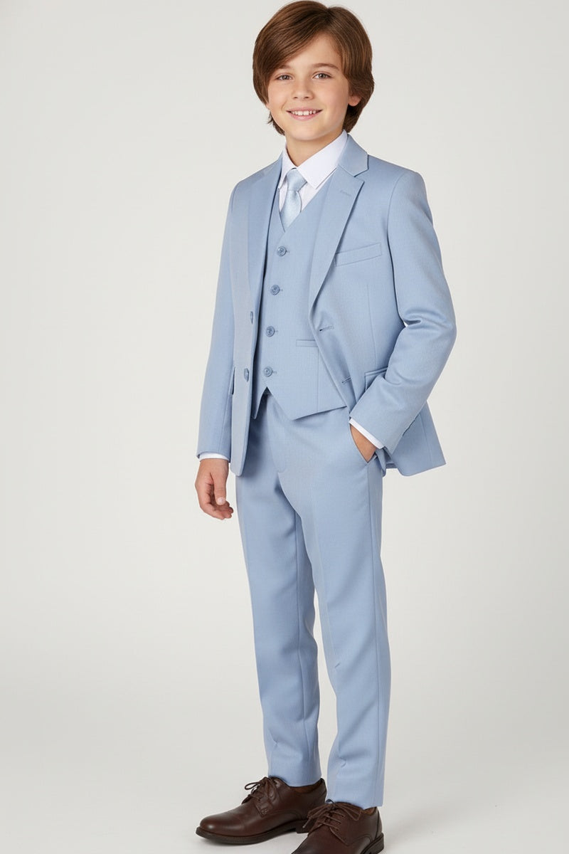Featured on TheKnot.com The "Liam" Powder Blue 5-Piece Kids Set is featured in TheKnot.com's exclusive fashion gallery.