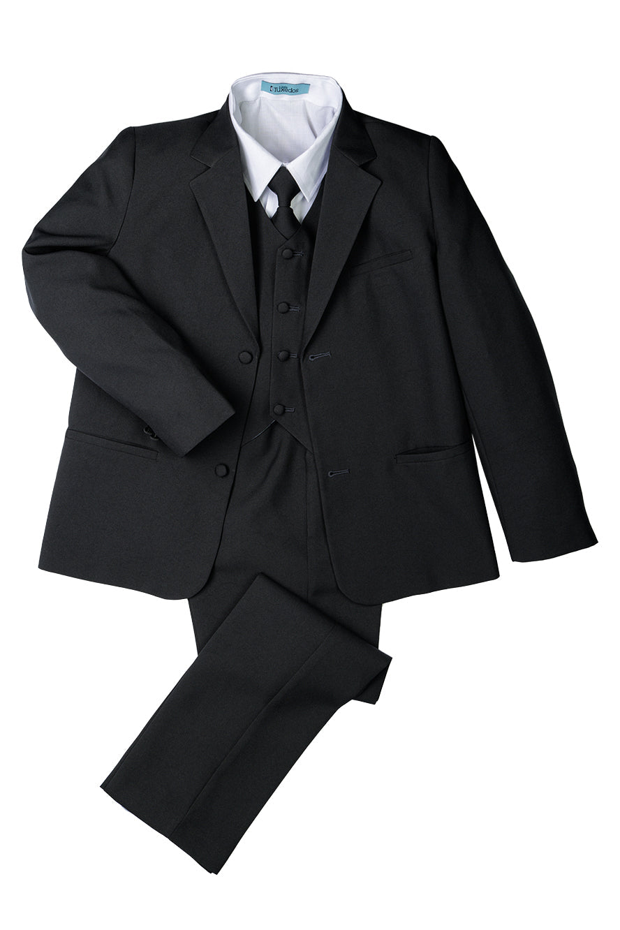 This 5-piece set includes the jacket, pants, shirt, vest and necktie.
