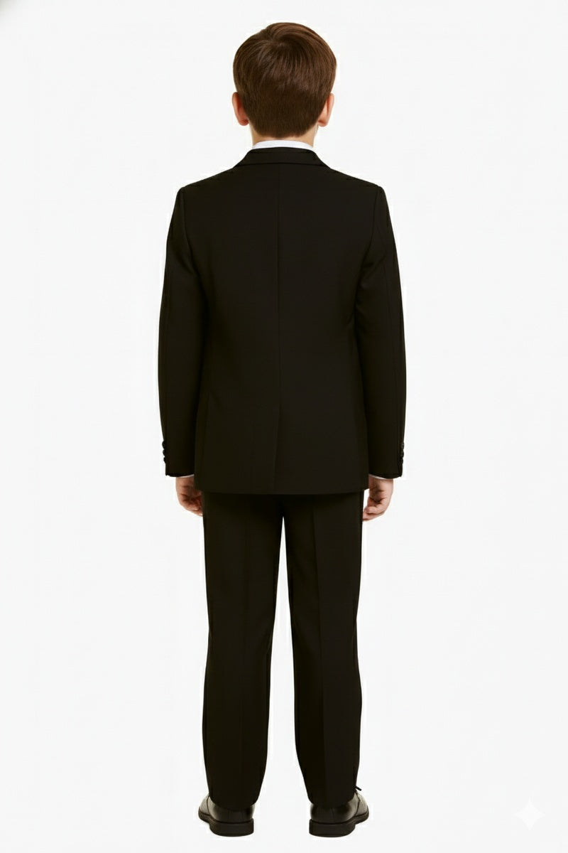 The "Mason" 5-Piece Suit Set, designed by Little Tuxedos, is part of our Essentials Collection. At an attractive price point, the Essentials Collection is one of our best sellers! Available in both classic fit and husky fit, the Essentials will accommodate kids of different shapes & sizes. Kids also love to show off the interior blue abstract premium lining! An expandable waist feature, adjustable vest, and adjustable necktie provide additional comfort for your little one.
