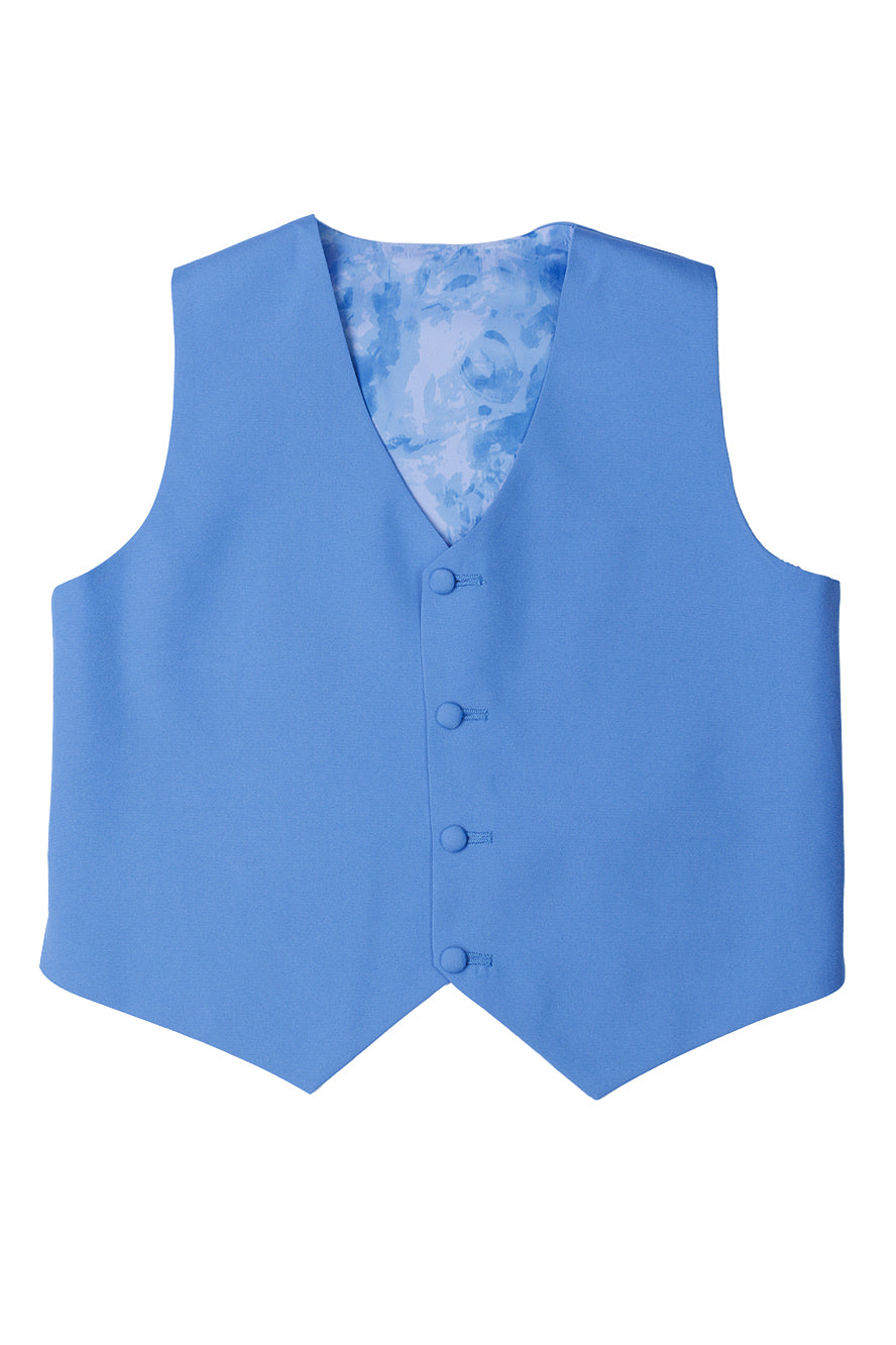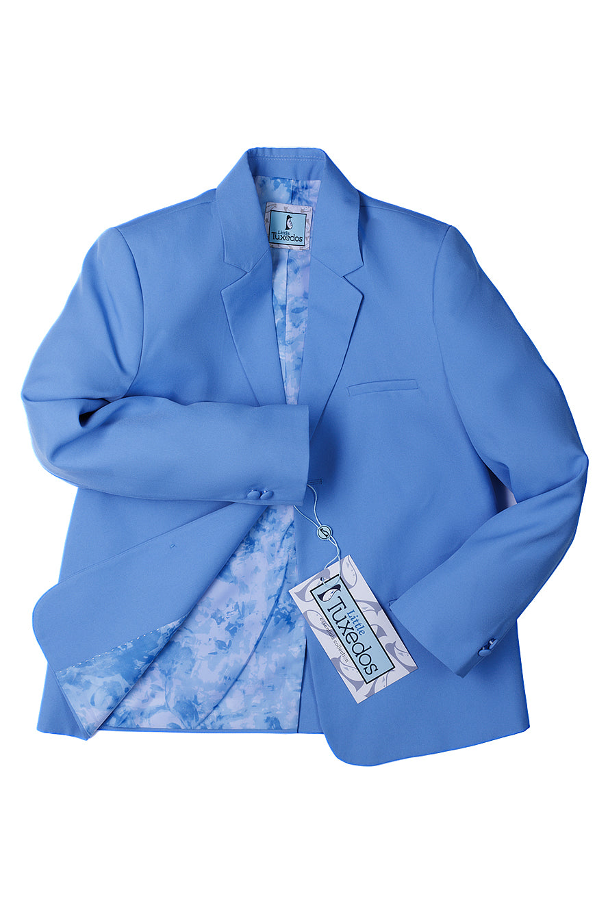 The "Mason" 5-Piece Suit Set, designed by Little Tuxedos, is part of our Essentials Collection. At an attractive price point, the Essentials Collection is one of our best sellers! Available in both classic fit and husky fit, the Essentials will accommodate kids of different shapes & sizes. Kids also love to show off the interior blue abstract premium lining! An expandable waist feature, adjustable vest, and adjustable necktie provide additional comfort for your little one.