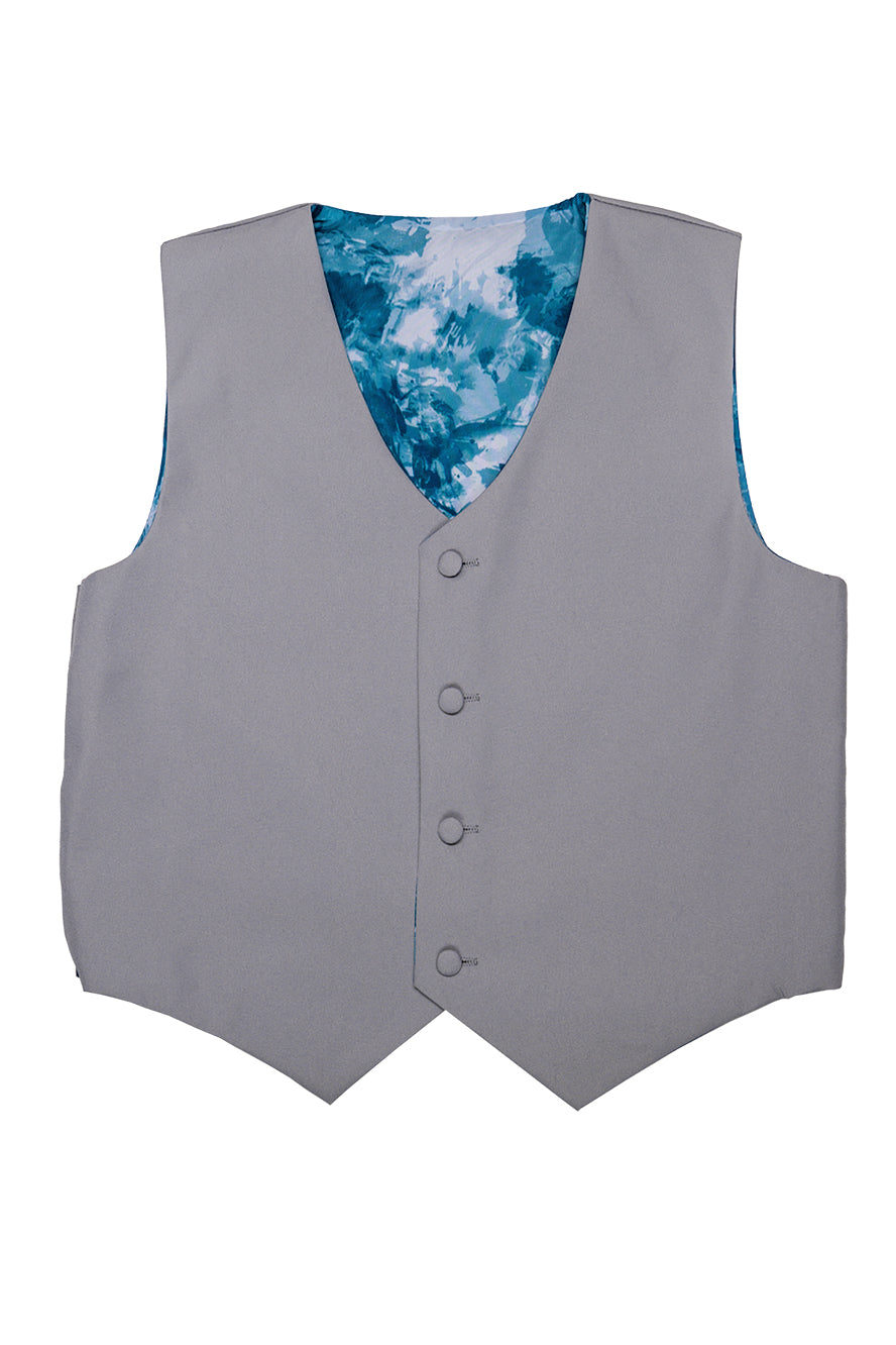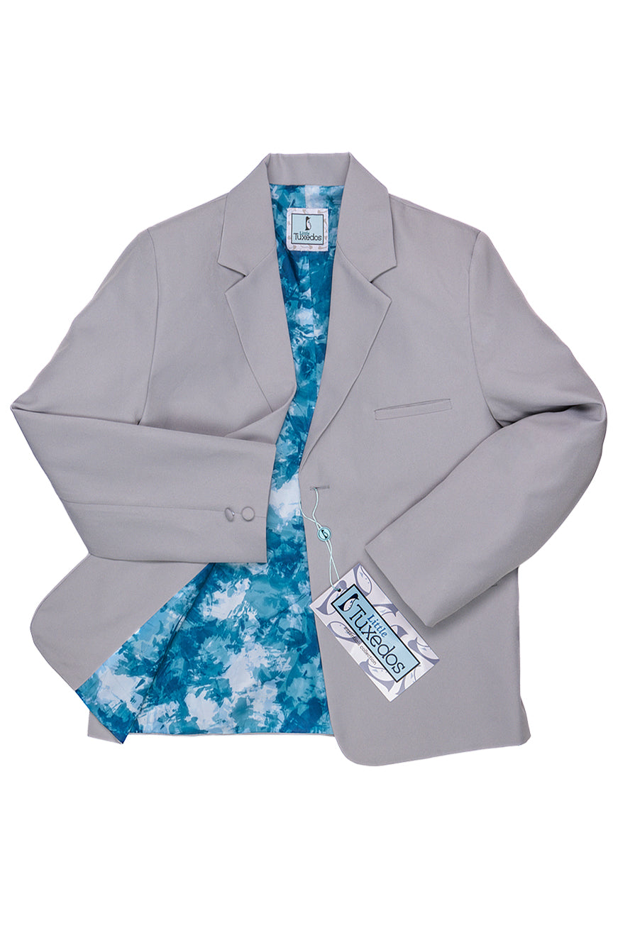 The "Mason" 5-Piece Suit Set, designed by Little Tuxedos, is part of our Essentials Collection. At an attractive price point, the Essentials Collection is one of our best sellers! Available in both classic fit and husky fit, the Essentials will accommodate kids of different shapes & sizes. Kids also love to show off the interior blue abstract premium lining! An expandable waist feature, adjustable vest, and adjustable necktie provide additional comfort for your little one.