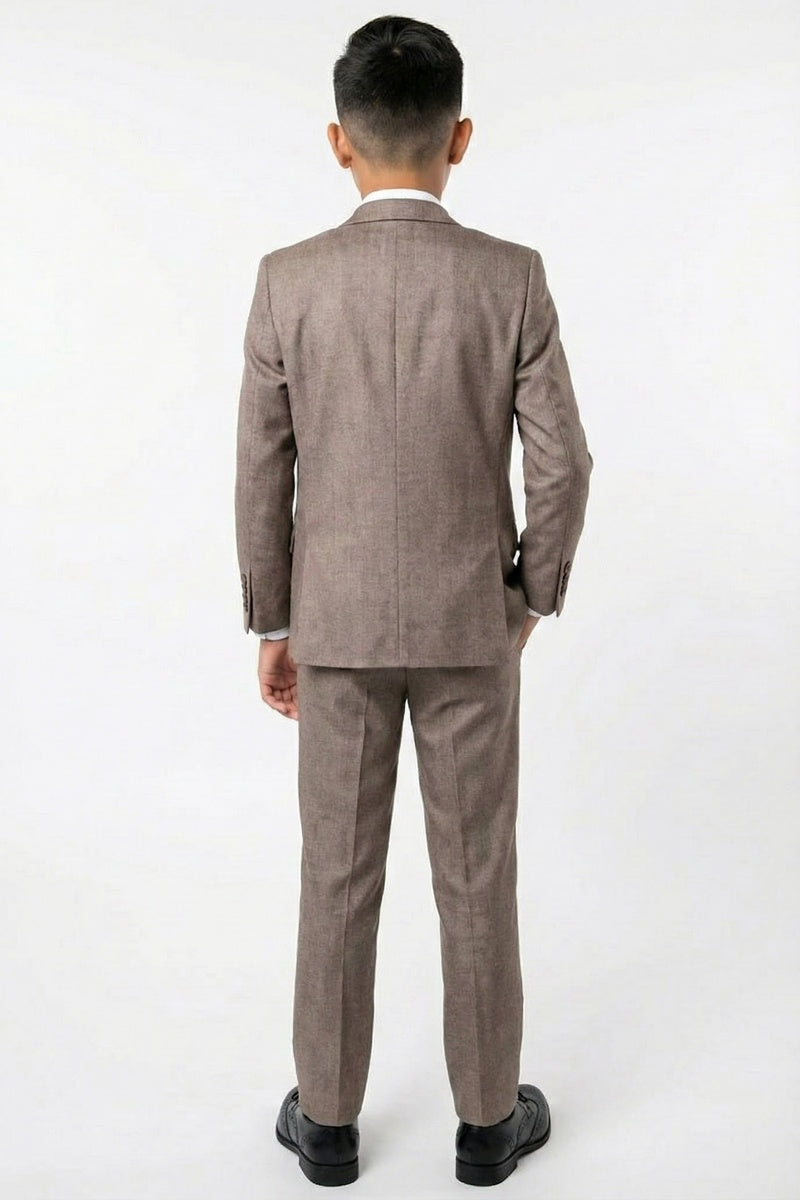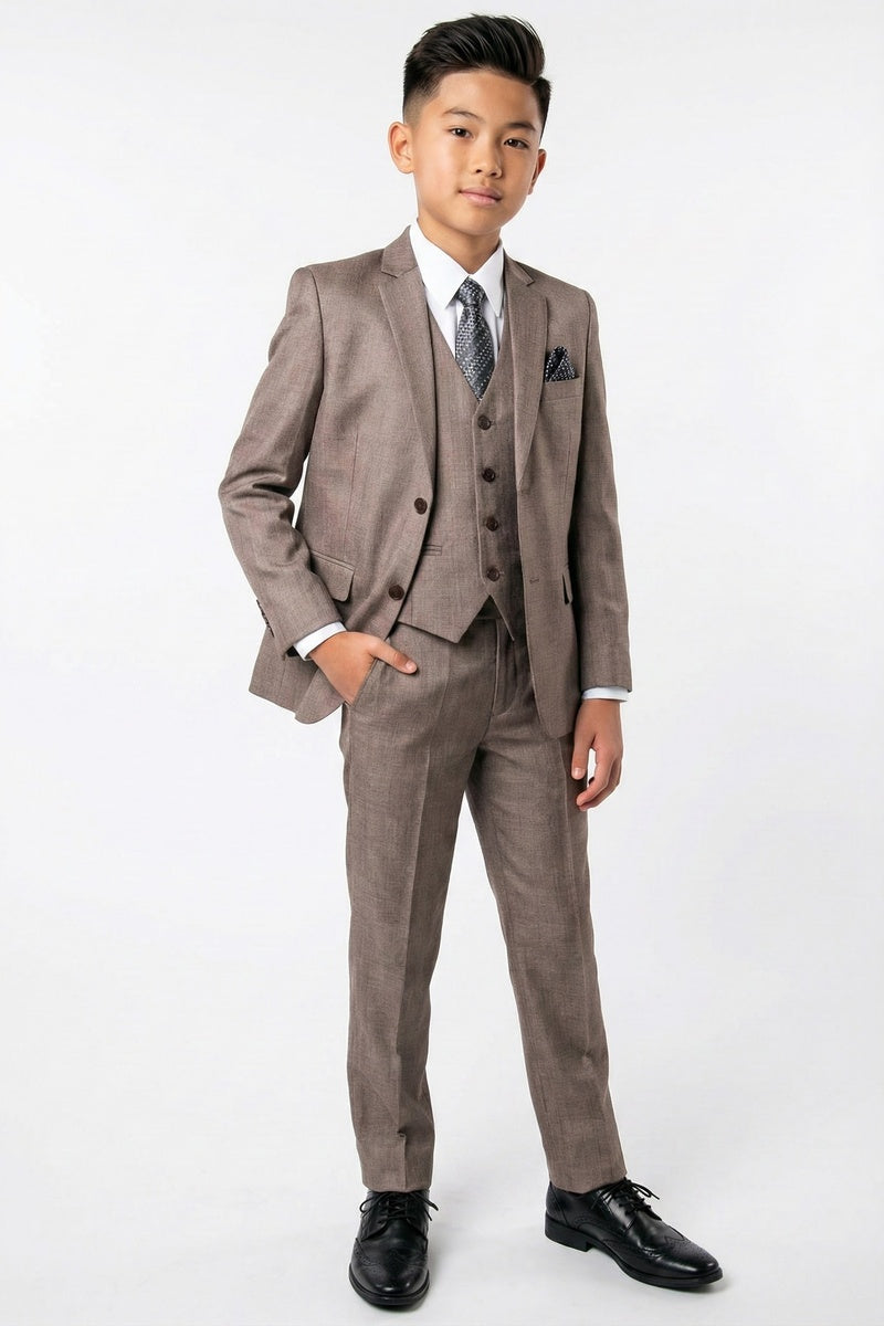 This 5-piece set includes the jacket, pants, shirt, vest, and tie.