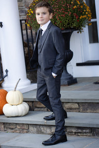 "Premium" Kids Steel Grey 5-Piece Wool Blend Suit