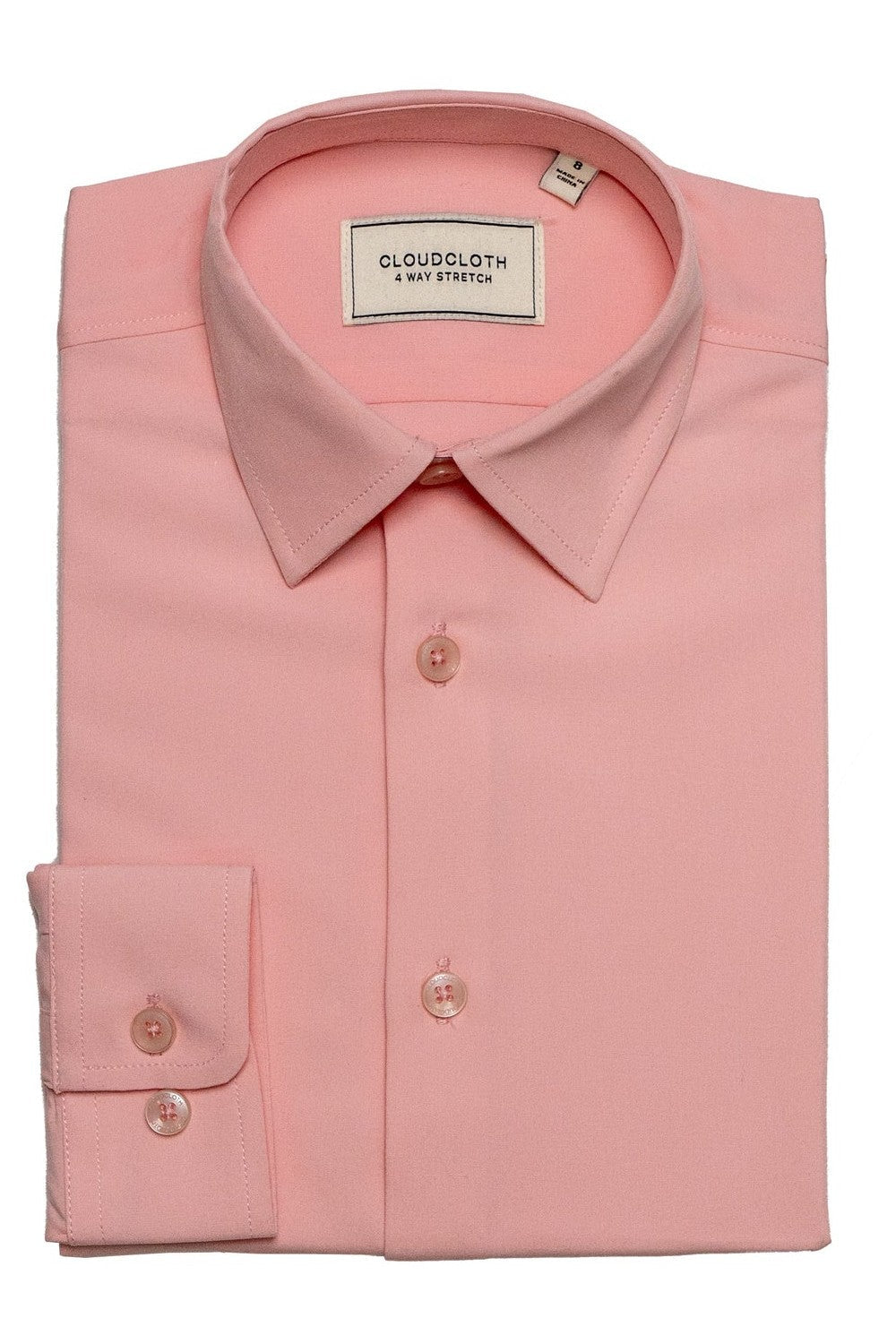 The "Cloud Cloth" Kids Pink Laydown Dress Shirt, crafted from a breathable stretch blend that is comfortable and light weight, is also moisture wicking and wrinkle-resistant. The laydown collar is a traditional design that pairs perfectly with your preference of neckwear (bow tie or neck tie). This classic shirt is the perfect addition to your little one's tuxedo look!