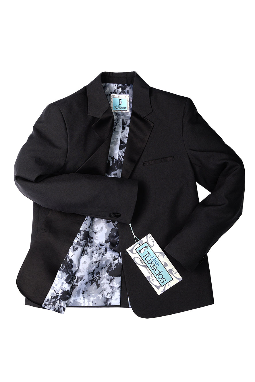 The "Prodigy" 5-Piece Tuxedo Set, designed by Little Tuxedos, is part of our Essentials Collection. At an attractive price point, the Essentials Collection is one of our best sellers! Available in both classic fit and husky fit, the Essentials will accommodate kids of different shapes & sizes. Kids also love to show off the interior blue abstract premium lining! An expandable waist feature, adjustable vest, and adjustable necktie provide additional comfort for your little one.