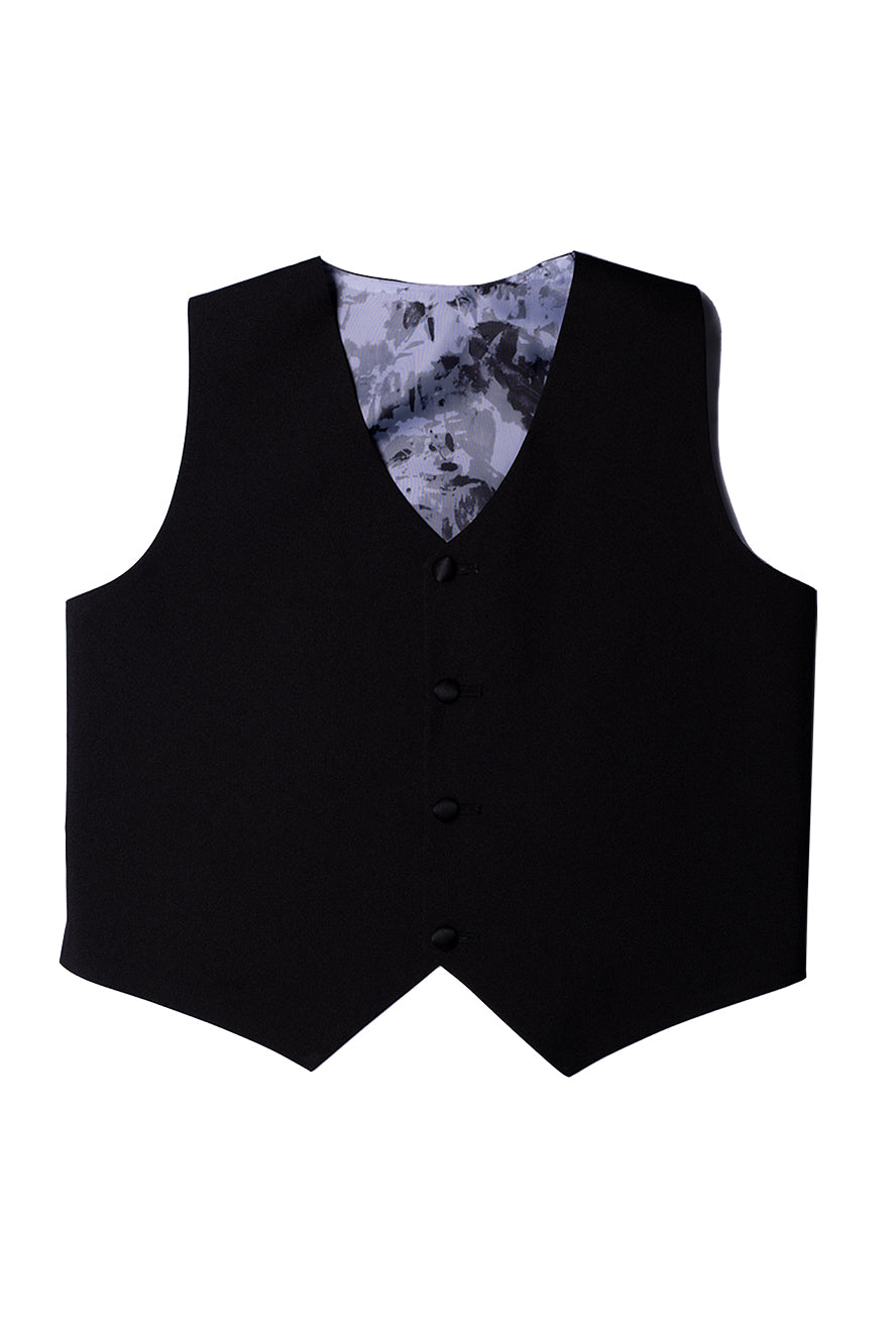 The "Prodigy" 5-Piece Tuxedo Set, designed by Little Tuxedos, is part of our Essentials Collection. At an attractive price point, the Essentials Collection is one of our best sellers! Available in both classic fit and husky fit, the Essentials will accommodate kids of different shapes & sizes. Kids also love to show off the interior blue abstract premium lining! An expandable waist feature, adjustable vest, and adjustable necktie provide additional comfort for your little one.