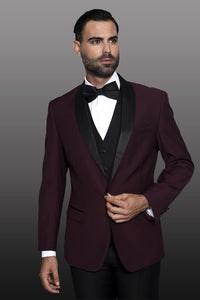 "Calloway" Burgundy 1-Button Shawl Tuxedo (3-Piece Set)