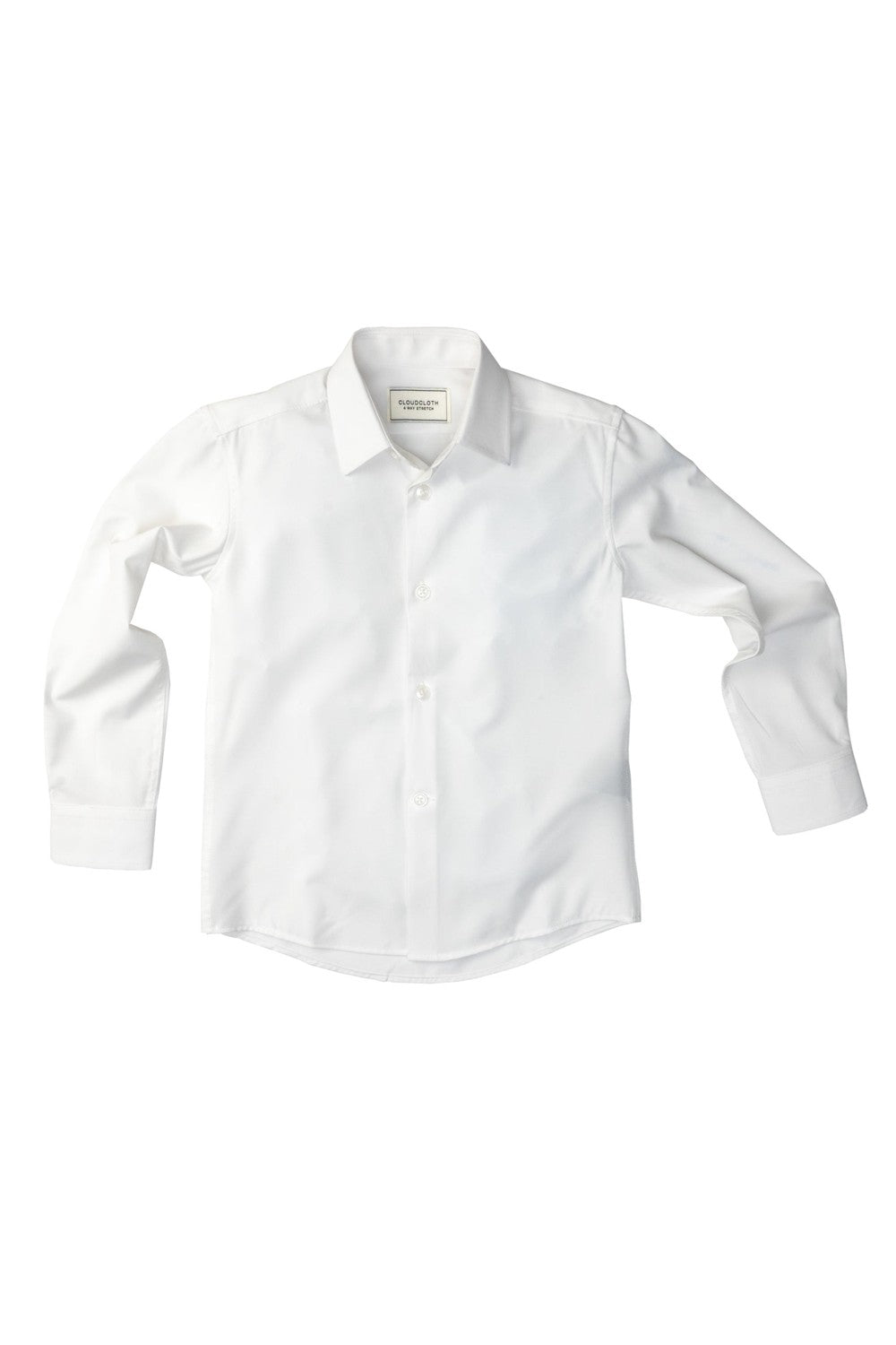 The "Cloud Cloth" White Laydown Dress Shirt, crafted from a breathable stretch blend that is comfortable and light weight, is also moisture wicking and wrinkle-resistant. The laydown collar is a traditional design that pairs perfectly with your preference of neckwear (bow tie or neck tie). This classic shirt is the perfect addition to your little one's tuxedo look!