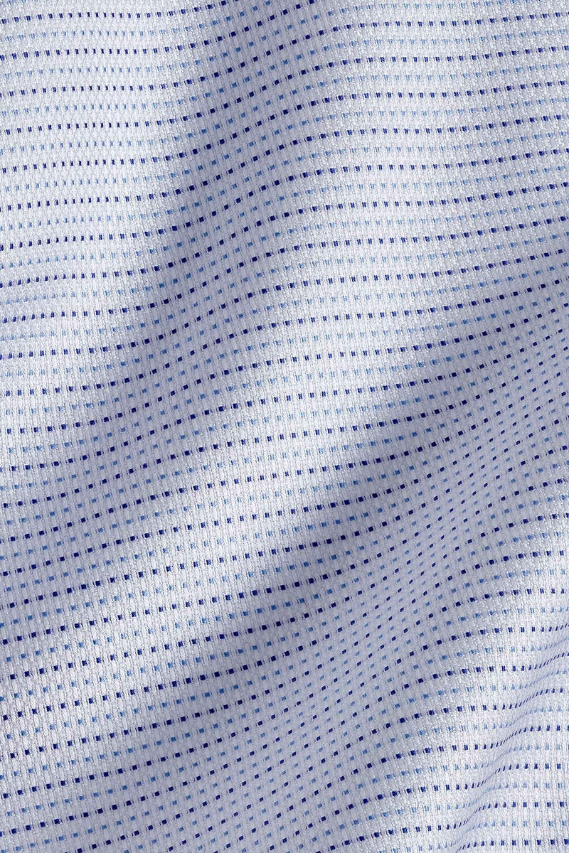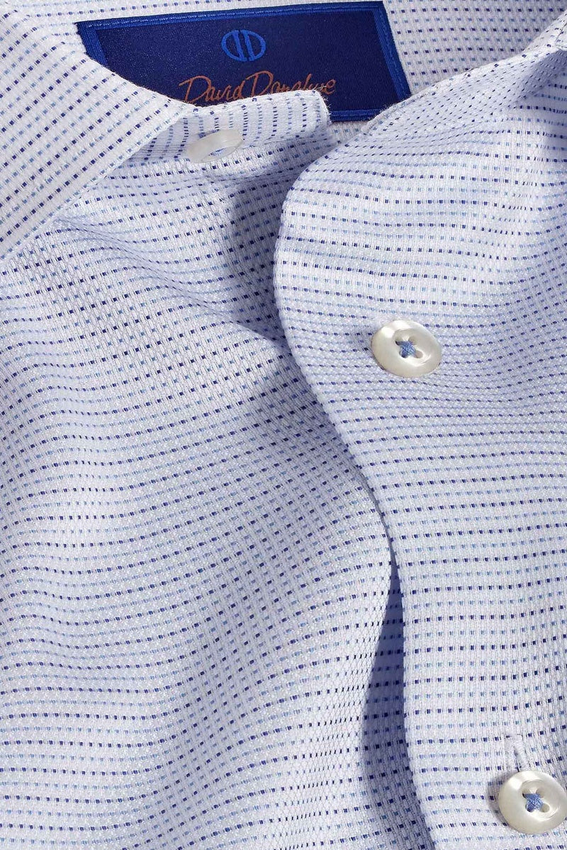The "Micro Dobby White & Blue" Dress Shirt by David Donahue is crafted from a luxuriously soft 100% pima cotton (80/2 Ply) that is comfortable and light weight and features a traditional design. The spread laydown collar is a traditional design that pairs perfectly with any bow tie or necktie.