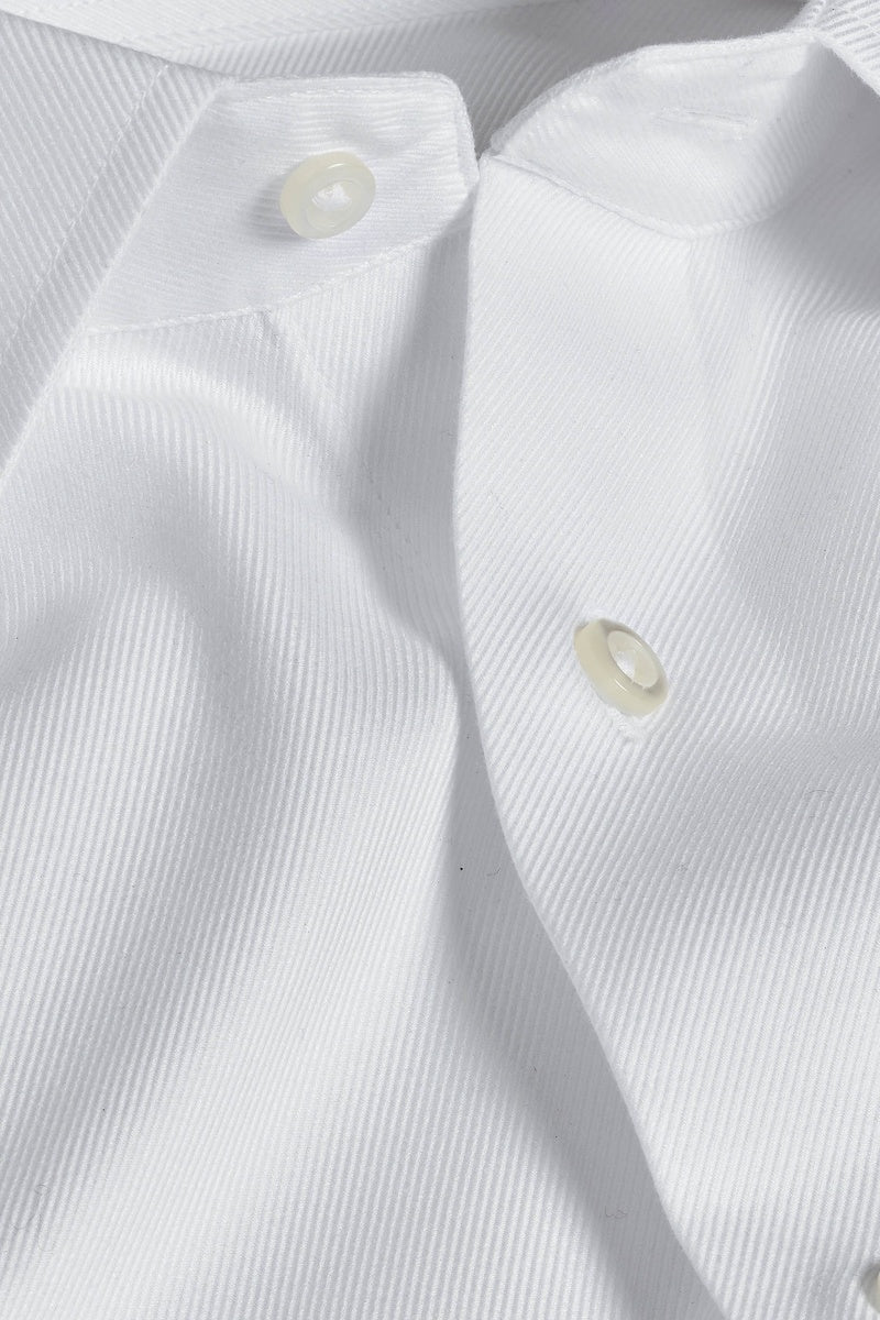 The "Non-Iron White Dress Shirt" by David Donahue is crafted from a luxuriously soft 100% cotton that is comfortable and light weight and features a traditional design. The laydown collar is a traditional design that pairs perfectly with any bow tie or necktie.