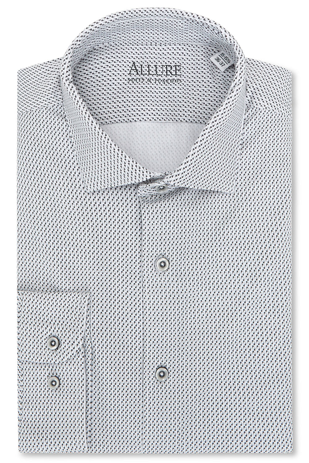 The "Vanguard" Grey Laydown Tuxedo Shirt, crafted from a breathable cotton stretch knit fabric that is both light weight and comfortable. The laydown collar is a traditional design that pairs perfectly with either a bow tie or necktie. The shirt cuffs are brilliantly designed as "convertible barrel cuffs" which allow you to wear the shirt either with or without cufflinks. However, we strongly suggest that cufflinks should always be worn if attending a formal event. The tailored fit size scale appeals to most gentleman of all shapes and sizes.
