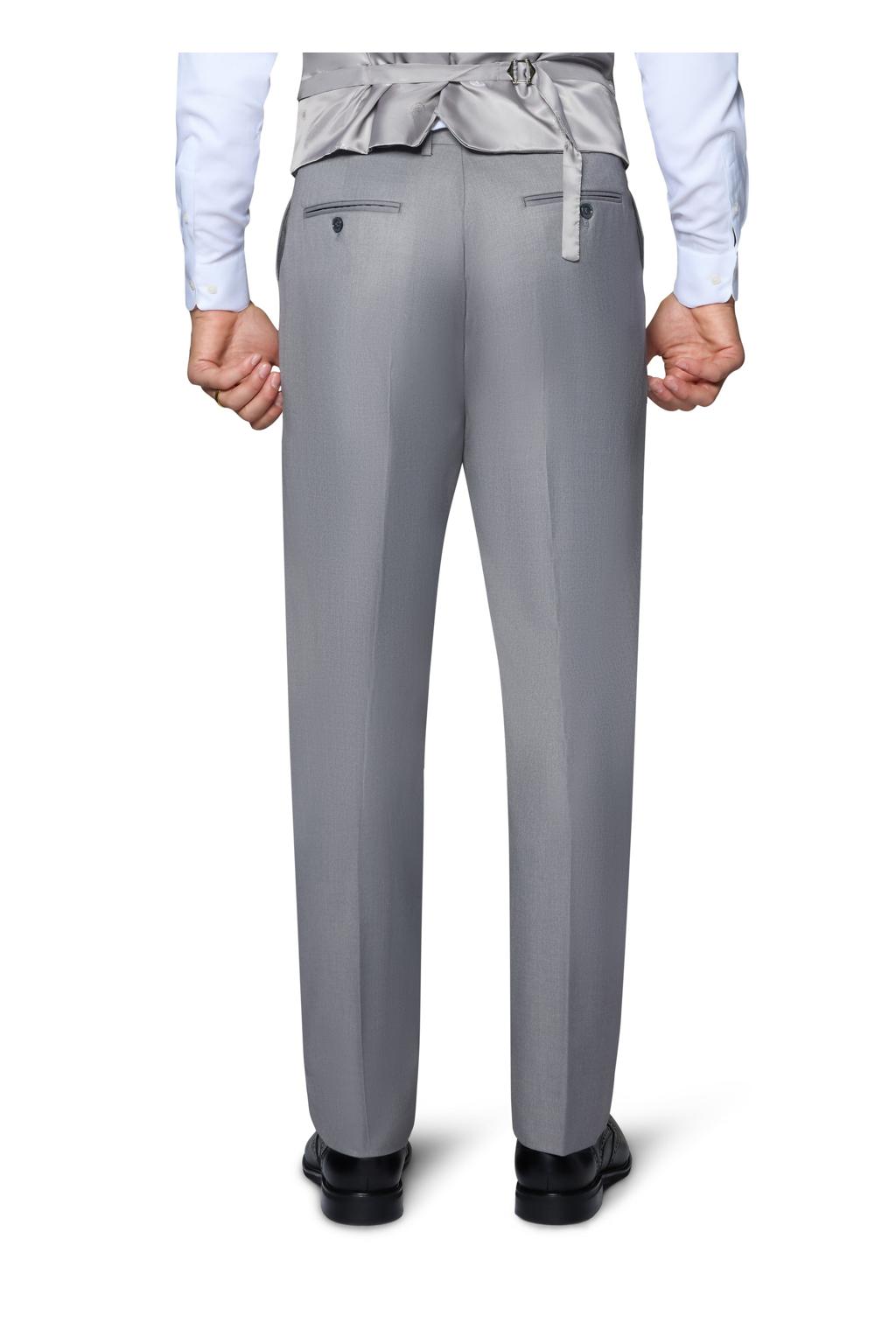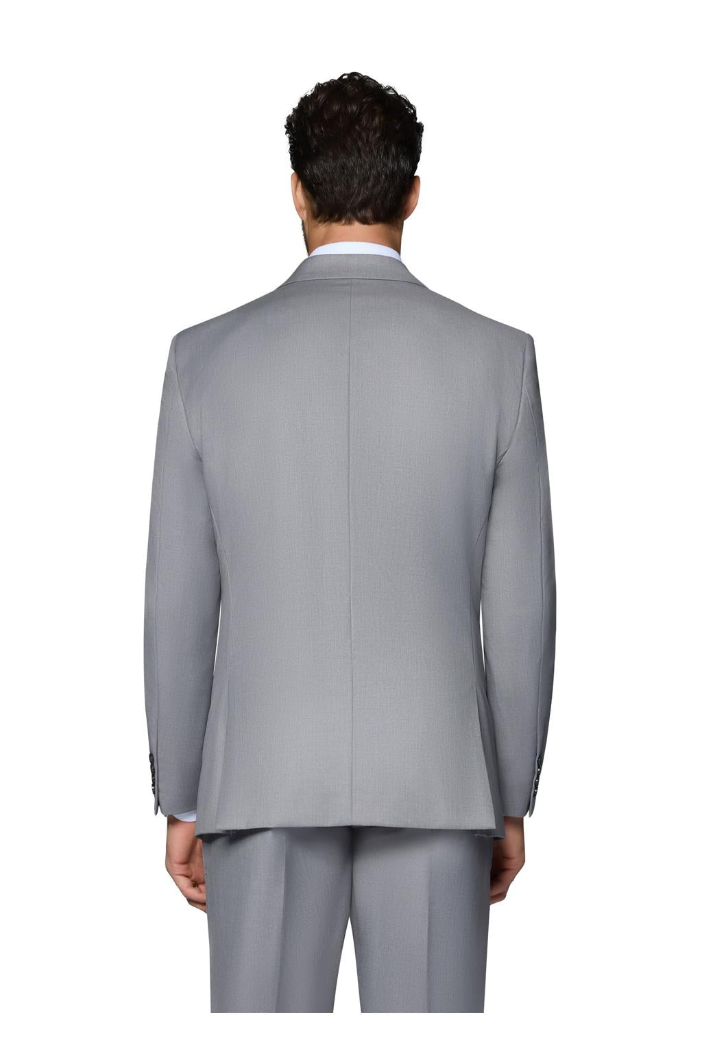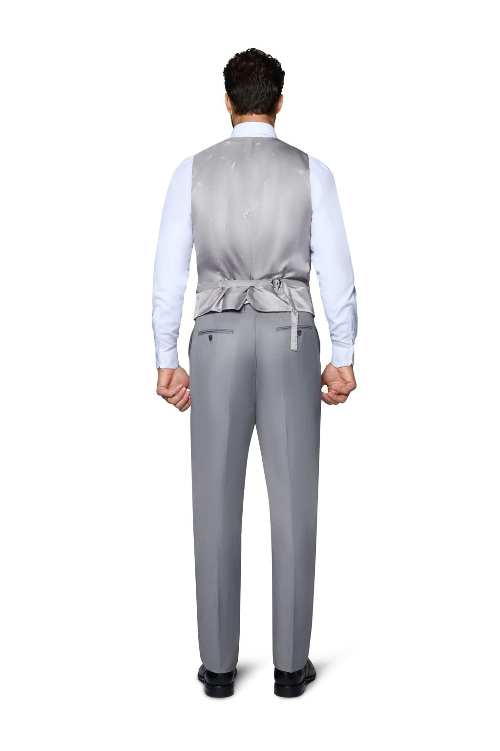 The "Ashford" Light Grey Men's Suit, designed by Bergamo Elegant, is hand-tailored in a signature modern fit or slim fit and crafted using a Super 150's luxury viscose blend fabric. The relatively high thread count of this 100% viscose blend fabric ensures a soft, luxurious feel that one would expect from Berragamo. The front of the jacket features notch lapels with a two button front enclosure. A top welt pocket is located on the left side of the jacket to properly store a pocket square. Darts stitched down the front of the jacket are tailored to perfection giving a desired tapered shape to the garment. Towards the cuff of each jacket sleeve, there are vented sleeves with satin-faced buttons once again showing that no details were overlooked in design. As we rotate towards the back of the jacket, we notice dual side vents providing a modern, updated look. Lastly, let's not forget the interior of the jacket. Silky soft interior lining complemented with plenty of pocket storage provides an ultra comfortable formal wear experience.