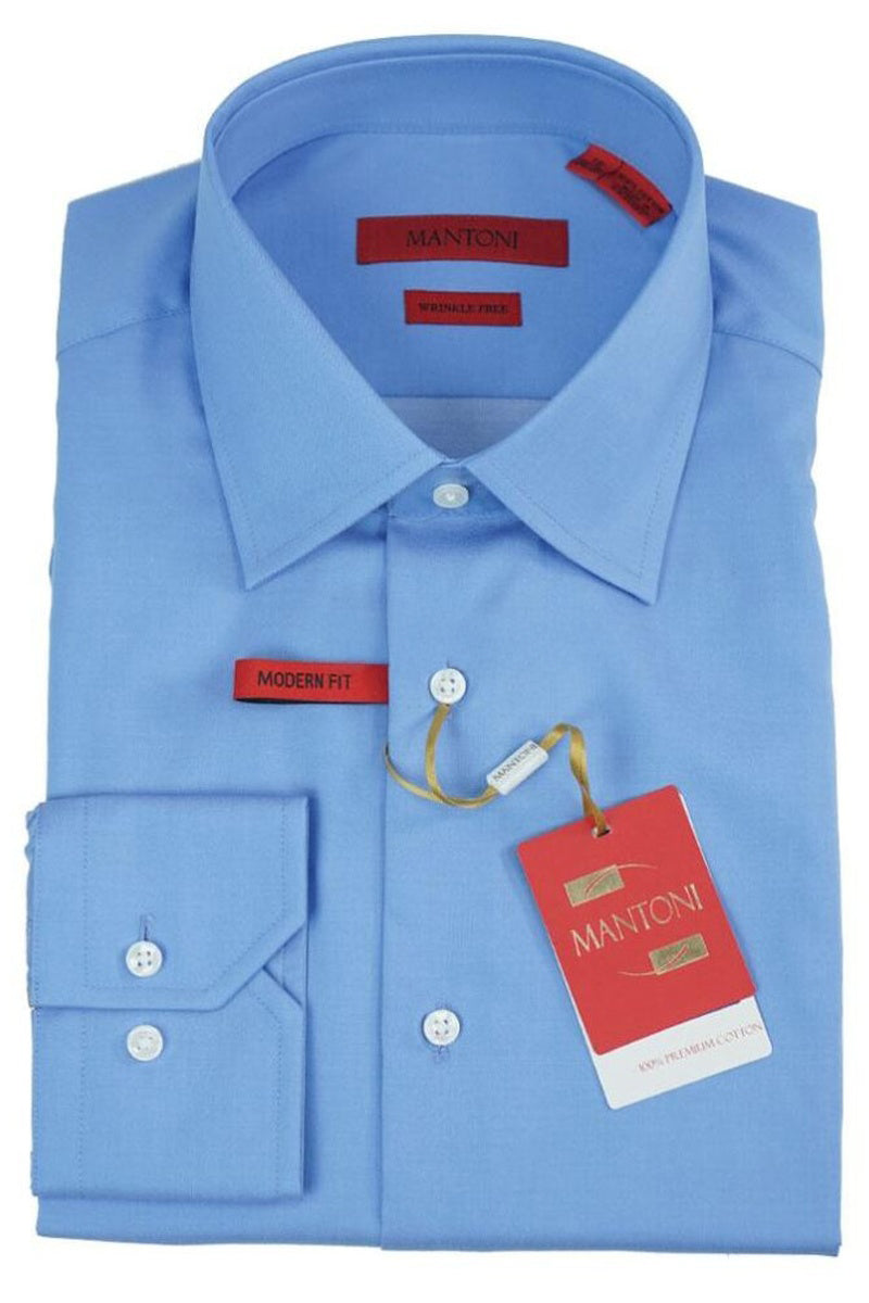 The "Orion" Medium Blue Laydown Dress Shirt by Mantoni is crafted from a luxuriously soft 100% cotton that is comfortable and light weight. The laydown collar is a traditional design that pairs perfectly with any bow tie or necktie. The shirt cuffs are traditional barrel cuffs.
