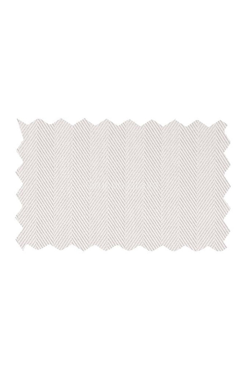 The "Santiago" White Herringbone Laydown Dress Shirt by Mantoni is crafted from a luxuriously soft 100% cotton that is comfortable and light weight. The laydown collar is a traditional design that pairs perfectly with any bow tie or necktie. The shirt cuffs are traditional barrel cuffs.