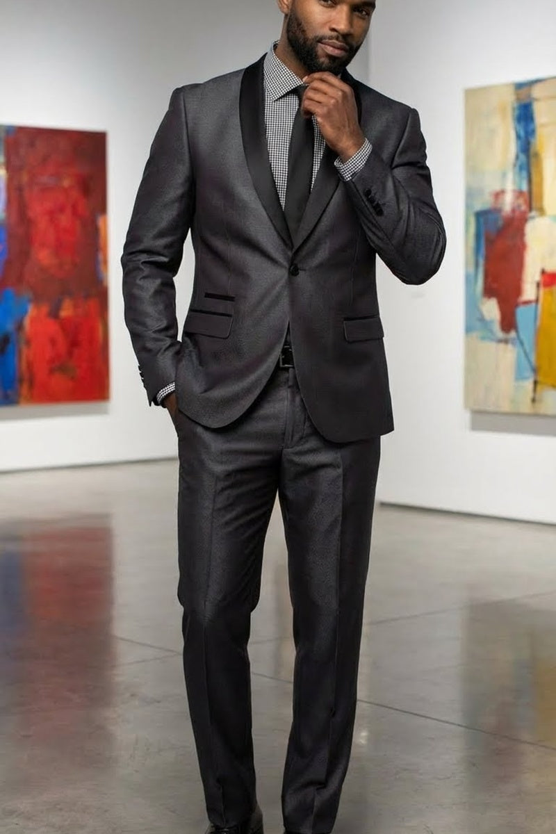 "Rowan" Charcoal 1-Button Shawl Tuxedo (2-Piece Set)