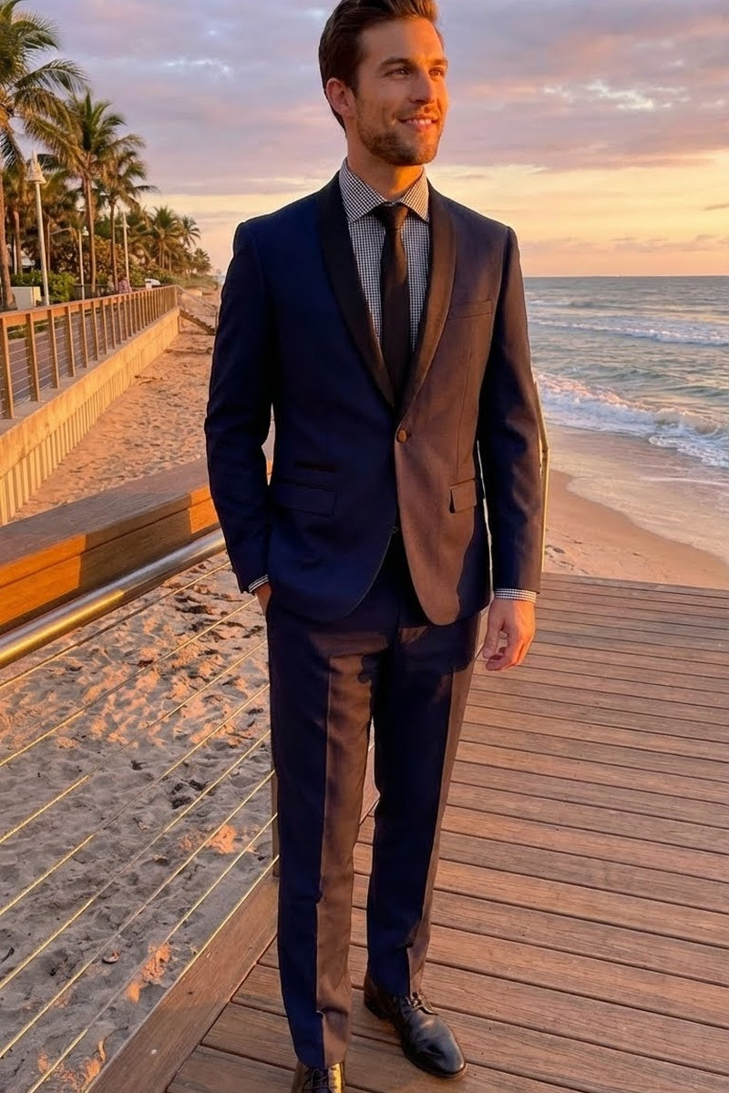 "Rowan" Navy 1-Button Shawl Tuxedo (2-Piece Set)