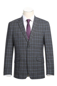 Grey Windowpane 2-Button Notch Suit (2-Piece Set)