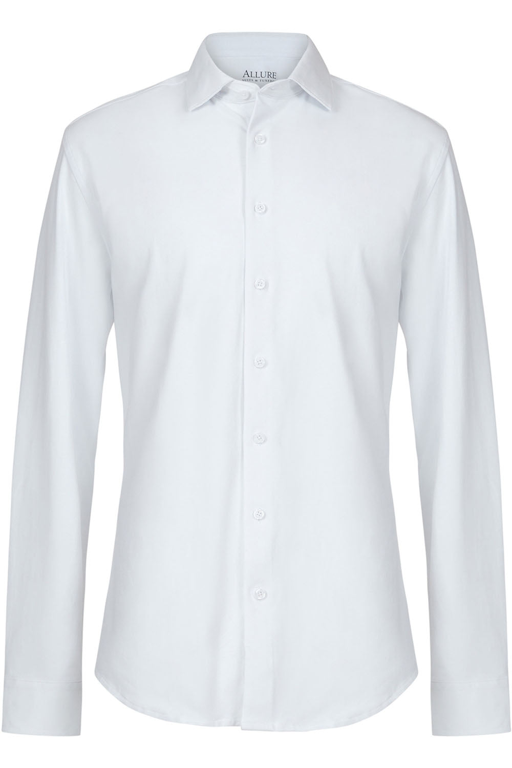 The "Astoria" White Laydown Tuxedo Shirt, crafted from a breathable cotton stretch knit fabric that is both light weight and comfortable. The laydown collar is a traditional design that pairs perfectly with either a bow tie or necktie. The shirt cuffs are brilliantly designed as "convertible barrel cuffs" which allow you to wear the shirt either with or without cufflinks. However, we strongly suggest that cufflinks should always be worn if attending a formal event. This shirt also accepts studs if you would like to use studs. The tailored fit size scale appeals to most gentleman of all shapes and sizes.