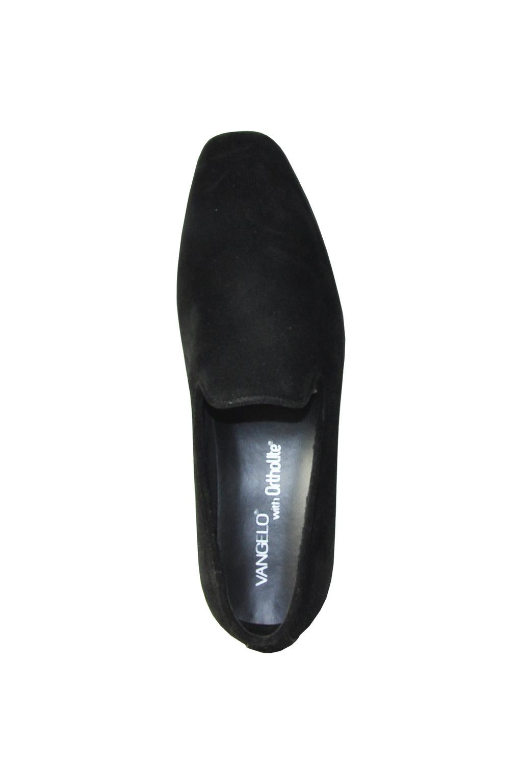 The "Chelsea" is crafted from a premium black suede fabric. It is a slip-on tuxedo shoe that was designed by Vangelo with ultimate comfort and style in mind. Features include a light weight construction, 1" durable rubber outsole and fully cushioned built-in ortholite insole for wicking away moisture and odor, and superior padded cushy comfort and shock absorption.