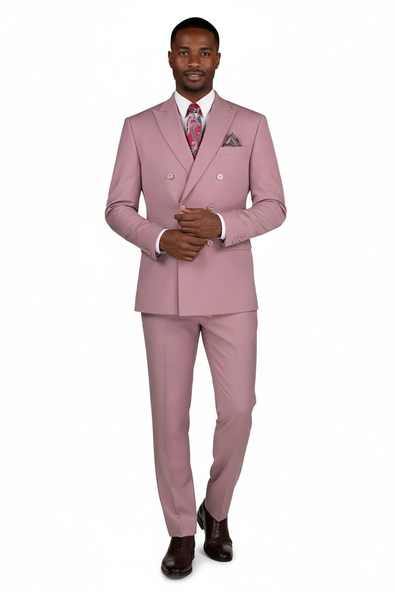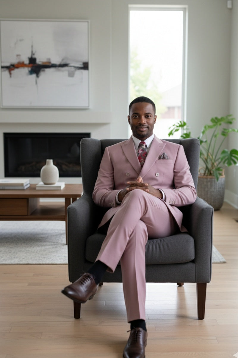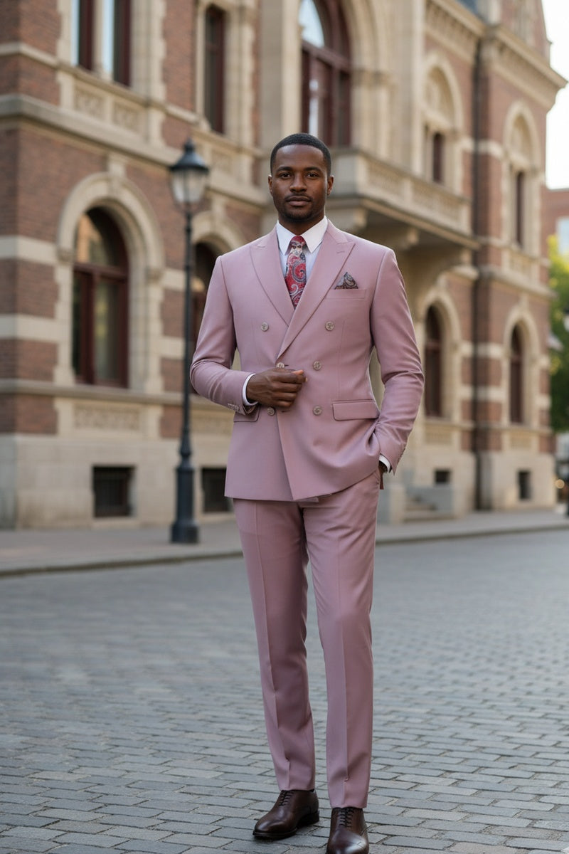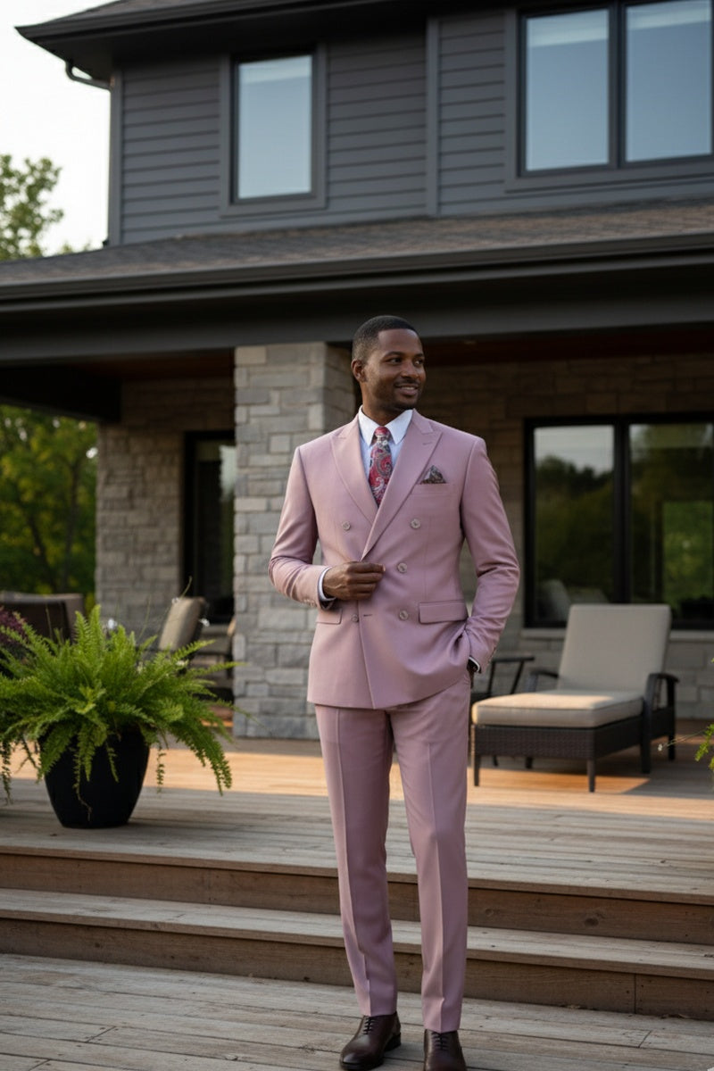 The "Apex" Lilac Suit, designed by Vinci, is hand-tailored in a signature slim fit and crafted using a premium viscose blend. The front of the jacket features peak lapels, six front buttons, and dual lower front flap pockets. A top welt pocket is located on the left side of the jacket to properly store a pocket square. Darts stitched down the front of the jacket are tailored to perfection giving a desired tapered shape to the garment. Towards the cuff of each jacket sleeve, there are vented sleeves for a more tailored, distinguished look. As we rotate towards the back of the jacket, we notice dual side vents providing a modern, updated look. Lastly, let's not forget the interior of the jacket. Silky soft interior lining complemented with plenty of pocket storage provides an ultra comfortable formal wear experience.