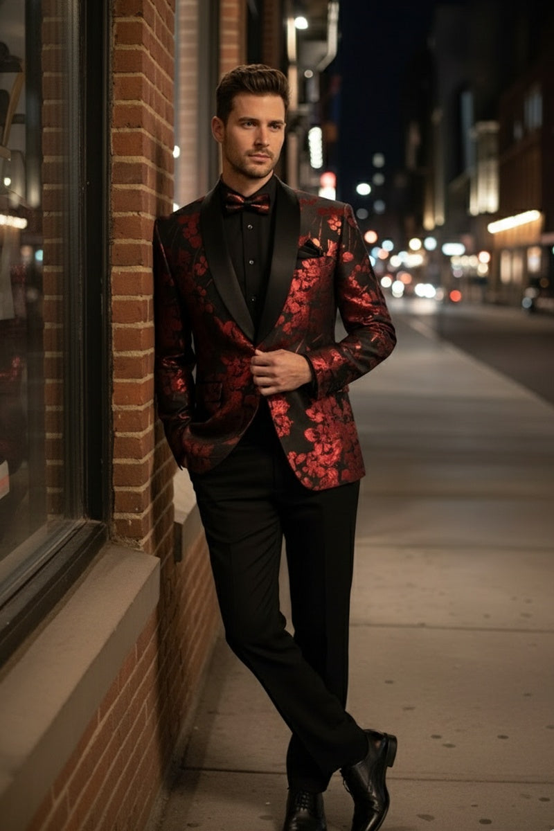 MATCHING PANTS:The pants that we recommend to go with this "Floral Fusion" jacket are the "Vinci" Black Poly Rayon Dress Pants ($59.95).