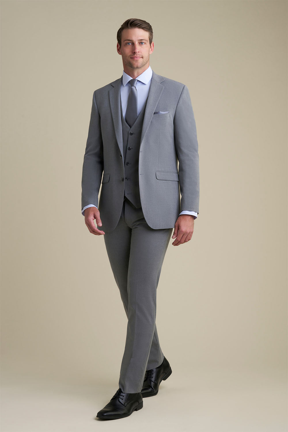 COMPANION PANTS: The pants that are designed to go with this "Savoy" jacket are the "Mayfair" Medium Grey Suit Pants ($84.95). These pants are crafted using the same luxurious stretch blend fabric.