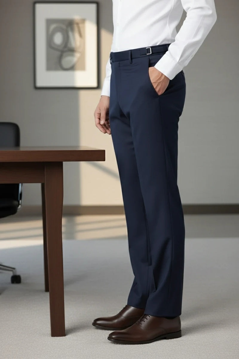 A staple for any stylish modern day man is a well-fitted and high quality suit. The "Ethan" Navy Suit Pants are made from a luxurious viscose blend (Super 150's to be exact), making them a great option to be worn at both business casual, weddings and other special events. These plain front, solid suit pants are available in both modern and slim fit sizes and are sure to become a staple piece in any wardrobe.