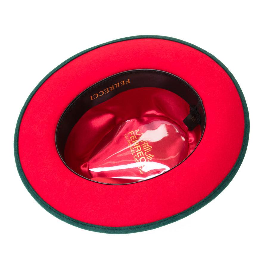 Hunter Green & Red Grayson Fedora 100% Australian Wool Crushable Hat