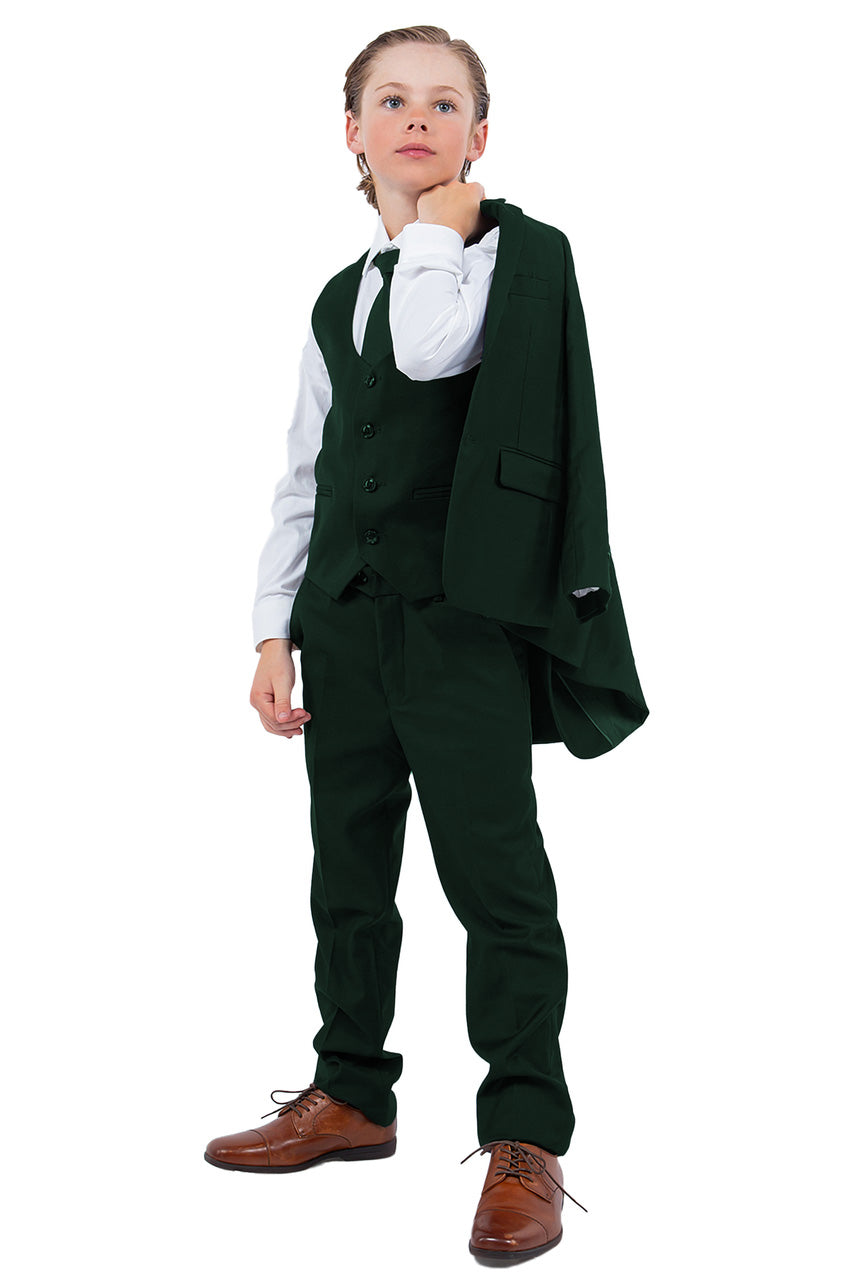 This 5-piece set includes the jacket, pants, shirt, vest and tie.