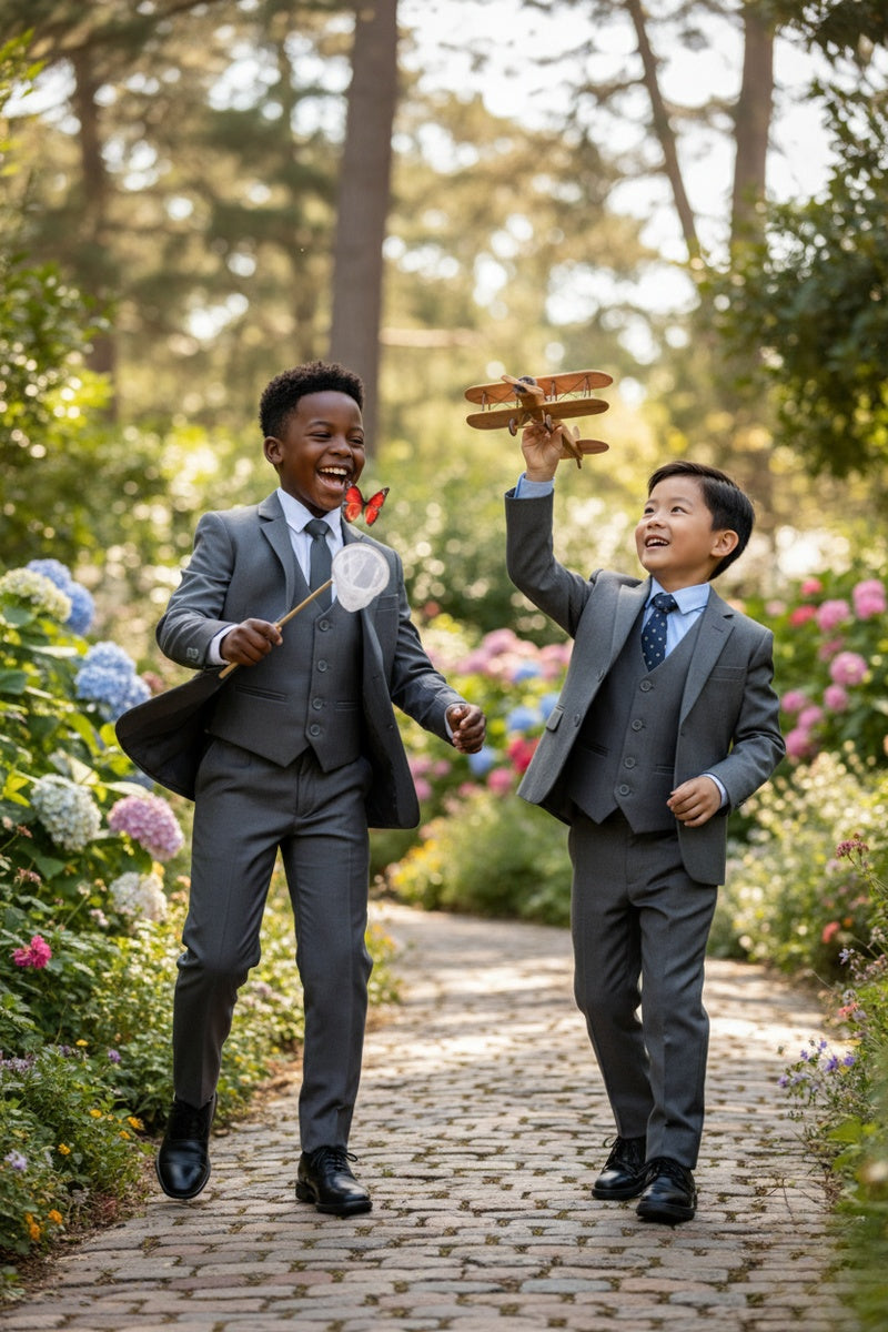 This 5-piece set includes the jacket, pants, shirt, vest and tie.