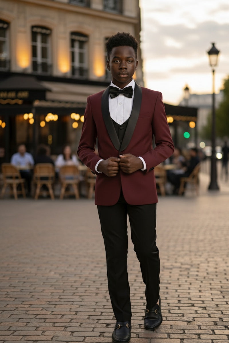 "Trent" Perry Ellis Kids Burgundy 5-Piece Tuxedo