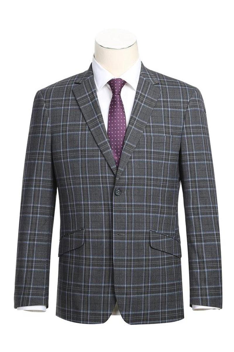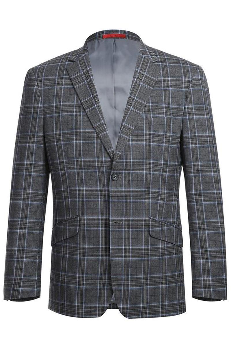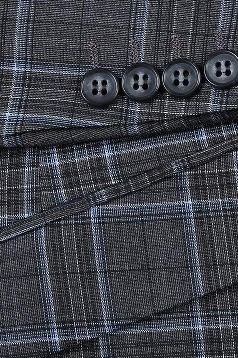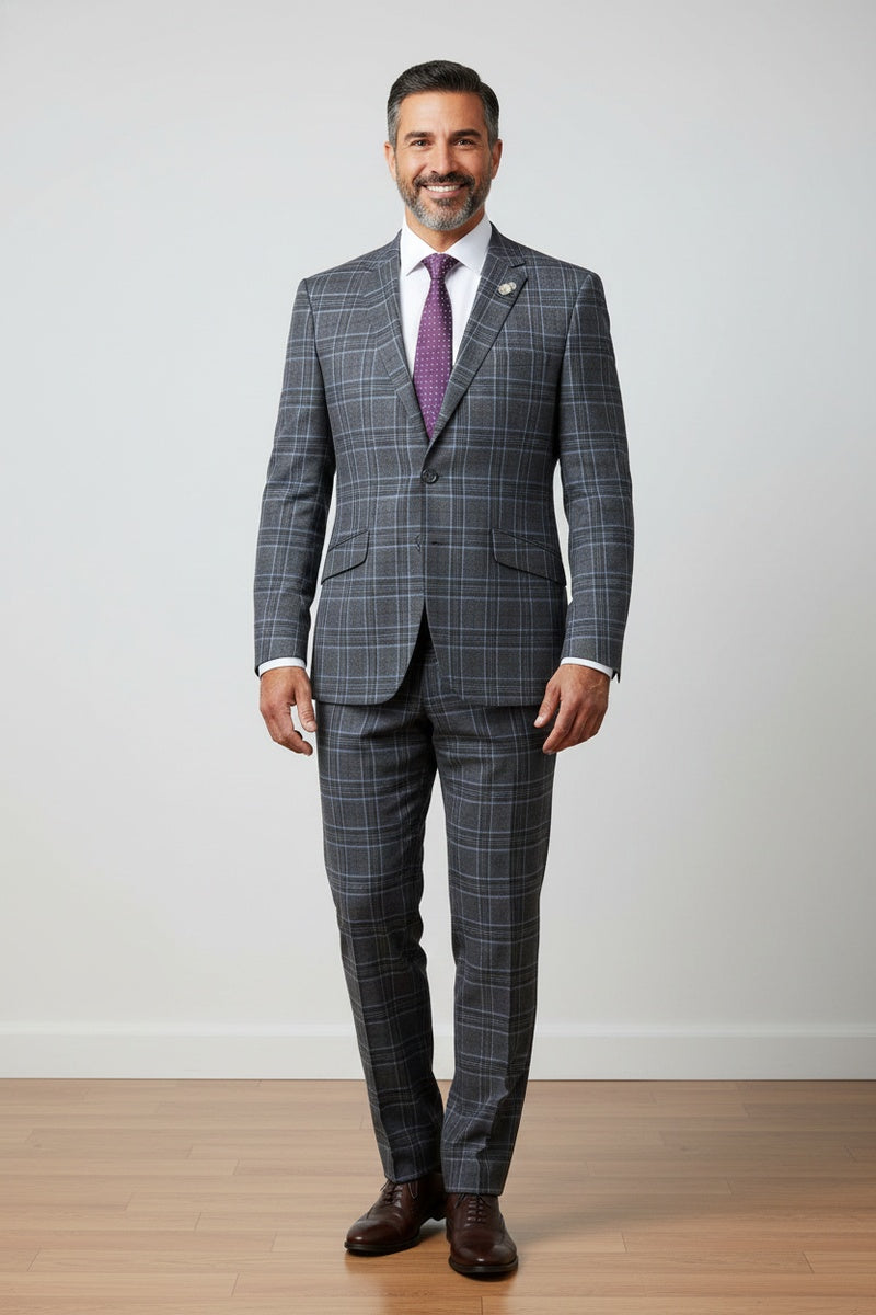 The Grey 2-Button Notch Suit, designed by Renoir, is hand-tailored in a signature classic fit and crafted using a premiumpoly-rayon stretch fabric. The front of the jacket features notch lapels. The front enclosure features two buttons and dual lower front besom pockets. A top welt pocket is located on the left side of the jacket to properly store a pocket square. Darts stitched down the front of the jacket are tailored to perfection giving a desired tapered shape to the garment. Towards the cuff of each jacket sleeve, there are vented sleeves once again showing that no details were overlooked in design. Lastly, let's not forget the interior of the jacket. Silky soft interior lining complemented with plenty of pocket storage provides an ultra comfortable formal wear experience.