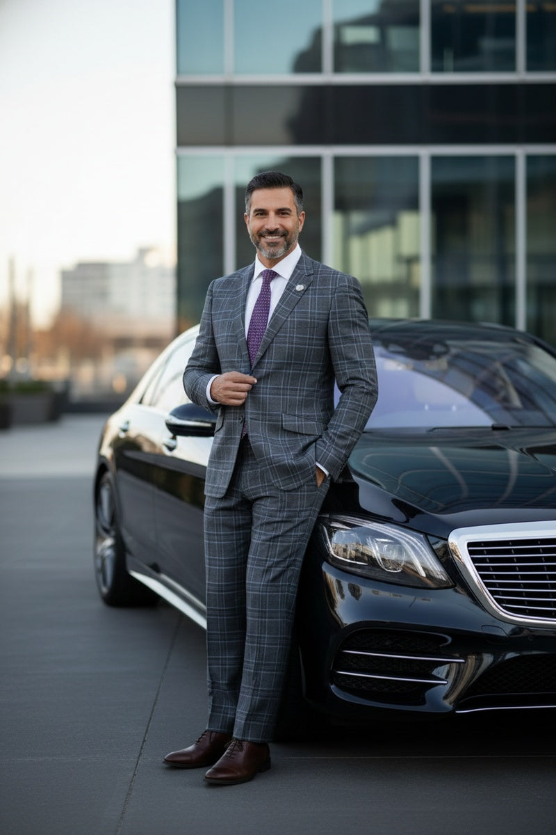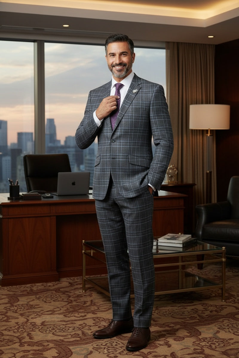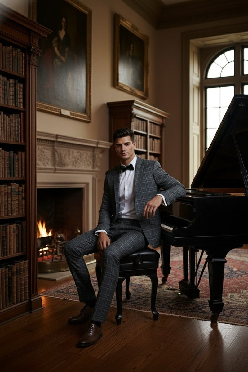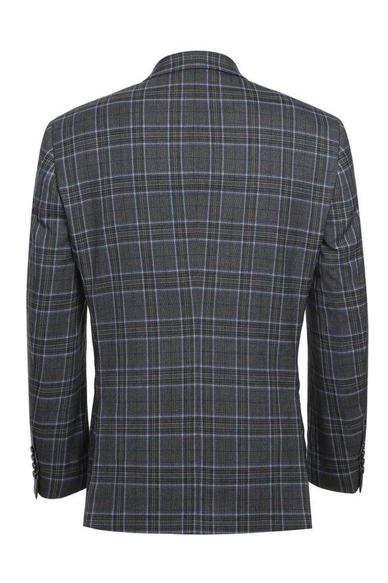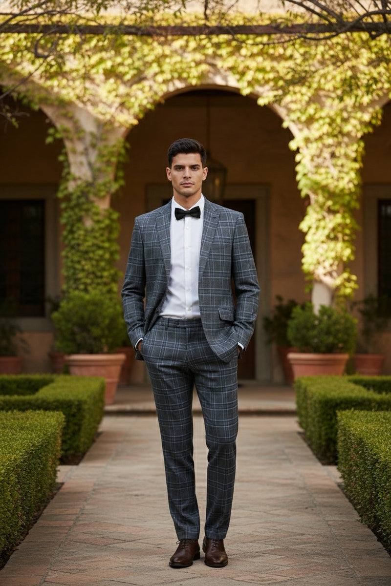 The Grey 2-Button Notch Suit, designed by Renoir, is hand-tailored in a signature classic fit and crafted using a premiumpoly-rayon stretch fabric. The front of the jacket features notch lapels. The front enclosure features two buttons and dual lower front besom pockets. A top welt pocket is located on the left side of the jacket to properly store a pocket square. Darts stitched down the front of the jacket are tailored to perfection giving a desired tapered shape to the garment. Towards the cuff of each jacket sleeve, there are vented sleeves once again showing that no details were overlooked in design. Lastly, let's not forget the interior of the jacket. Silky soft interior lining complemented with plenty of pocket storage provides an ultra comfortable formal wear experience.