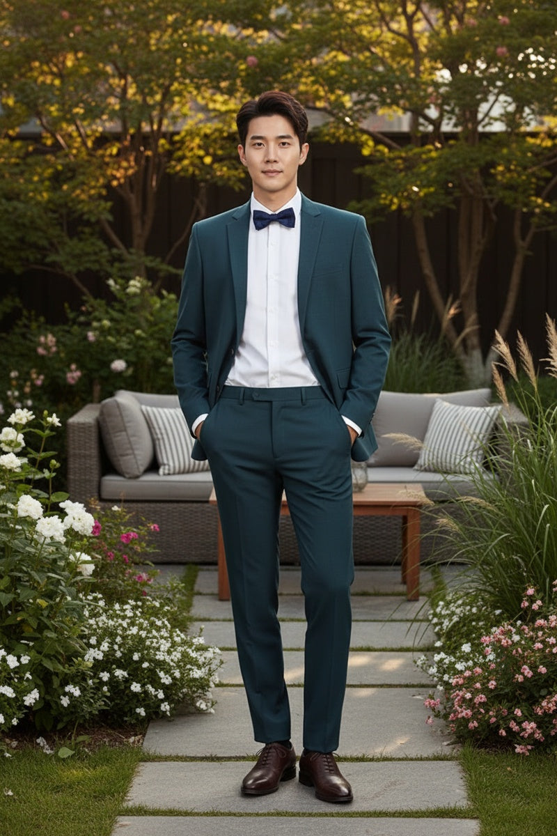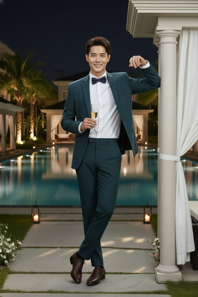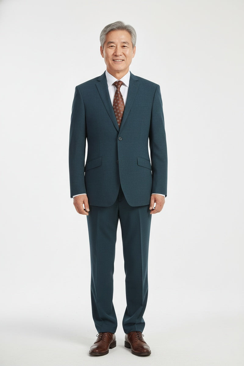 The Dark Blue 2-Button Notch Suit, designed by Renoir, is hand-tailored in a signature classic fit and crafted using a premiumpoly-rayon stretch fabric. The front of the jacket features notch lapels. The front enclosure features two buttons and dual lower front besom pockets. A top welt pocket is located on the left side of the jacket to properly store a pocket square. Darts stitched down the front of the jacket are tailored to perfection giving a desired tapered shape to the garment. Towards the cuff of each jacket sleeve, there are vented sleeves once again showing that no details were overlooked in design. Lastly, let's not forget the interior of the jacket. Silky soft interior lining complemented with plenty of pocket storage provides an ultra comfortable formal wear experience.